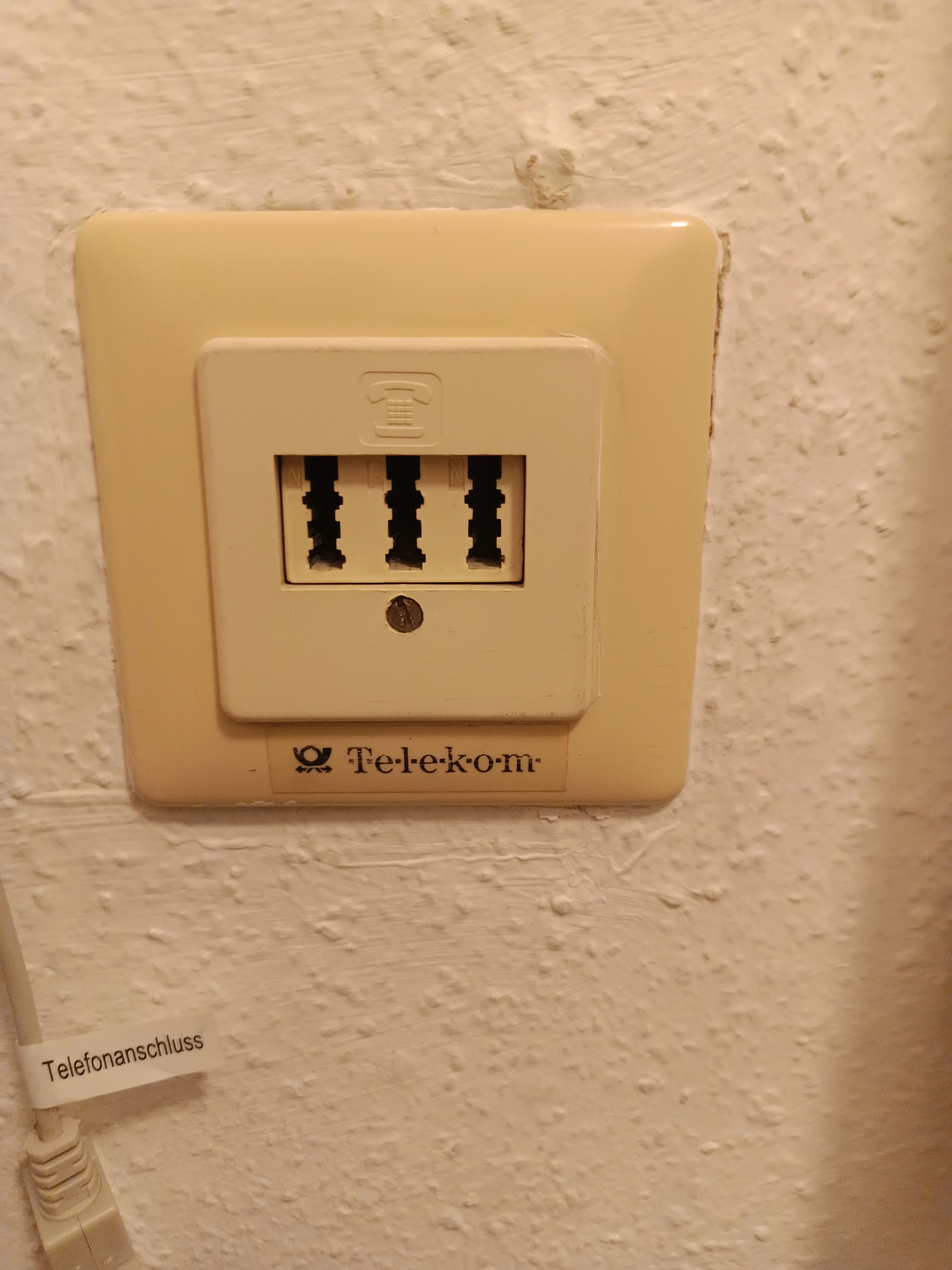 Öffne mal die Blende der Telekom-Dose und mache ein Bild.