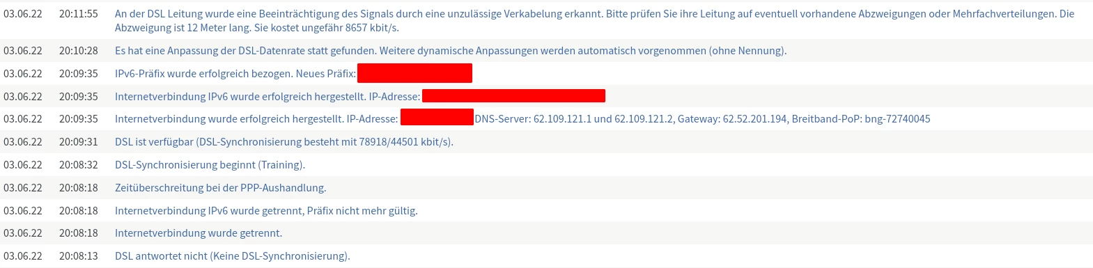 Vom O2 Service macht ja keiner etwas. Ich habe ja bereits 2 kommentarlos geschlossene Tickets bei denen, trotz Versprechen auf Rückmeldung vom Techniker. Macht es Sinn, bei der Telekom mal nachzuhaken? Denen gehört ja die Leitung. Kosten übernehme ich, wenn notwendig, nur soll das endlich ein Ende haben.