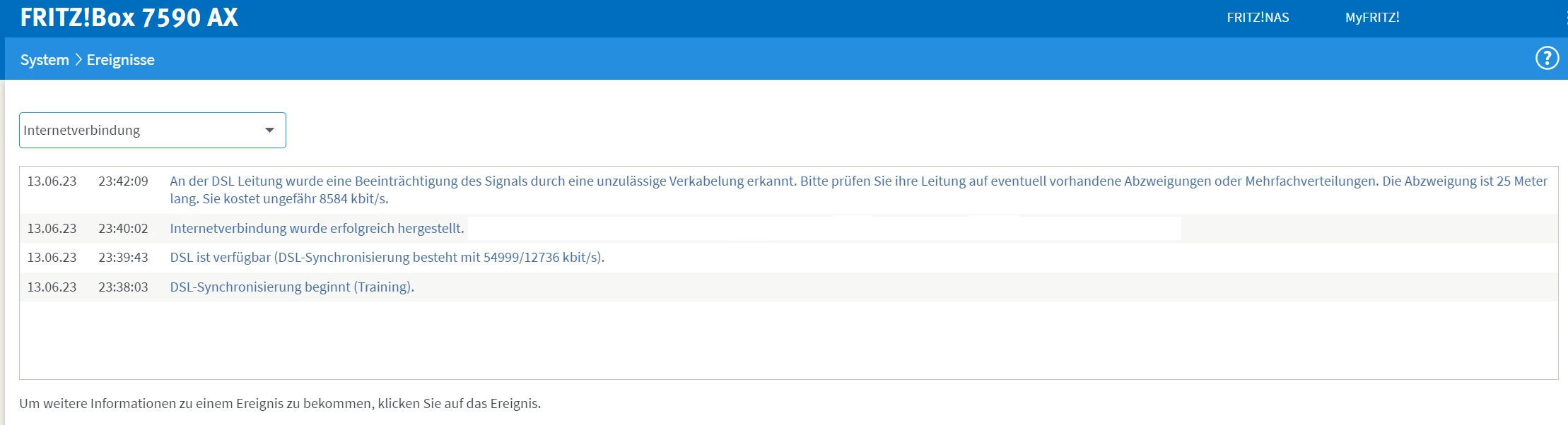 Um die Leitung vom APL zur Tae Dose auszuschliesen, wurde die Fritzbox direkt an der APL im Keller angeschlossen. Auch in diesem Fall, kam die Diagnose, dass keine Internetverbindung möglich.sei.