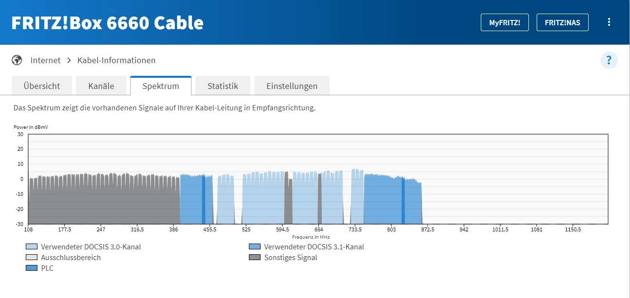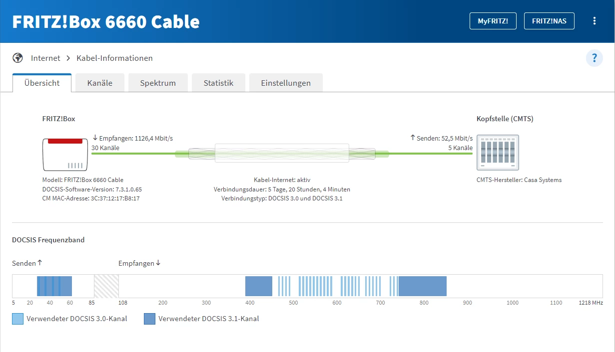 Zu Vertragsbeginn habe ich mir eine FRITZ!Box 6660 Cable angeschafft, über die wir mit DOCSIS 3.0 & 3.1 verbunden sind.