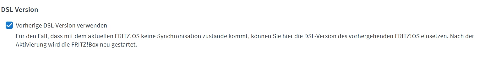 Ich habe auch schon die vorherige DSL-Version ausgewählt aber ohne Besserung: