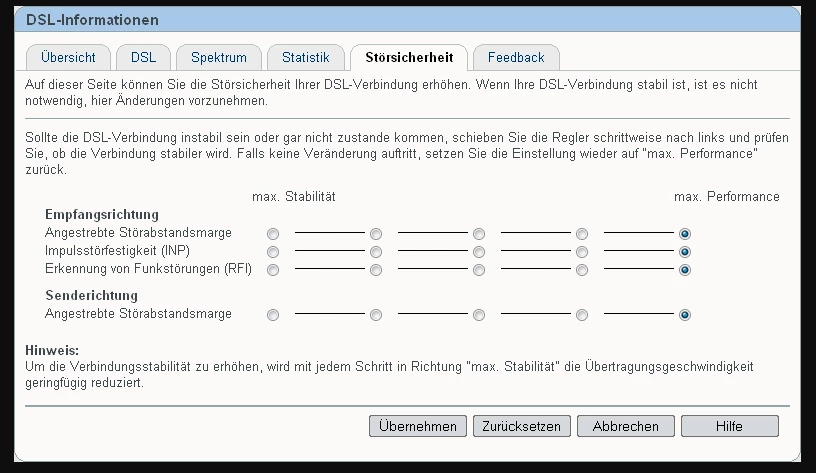 an der Störabstandsmarge was geändert? Also den Regler weiter nach links , in Richtung mehr Stabilität und weniger Speed?