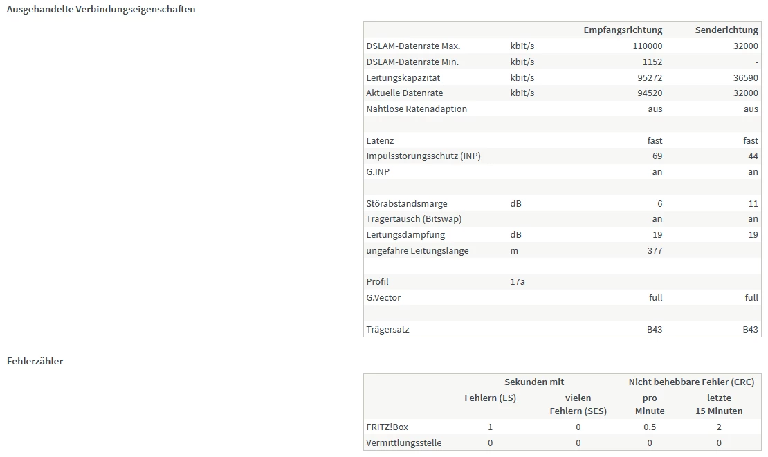 Edit: Das bei VDSL die DSLAM-Datenrate und Leitungskapazität unterschiedlich sind ist ja normal. Damit sind die Geschwindigkeitswerte bei der Fritzbox normal.
