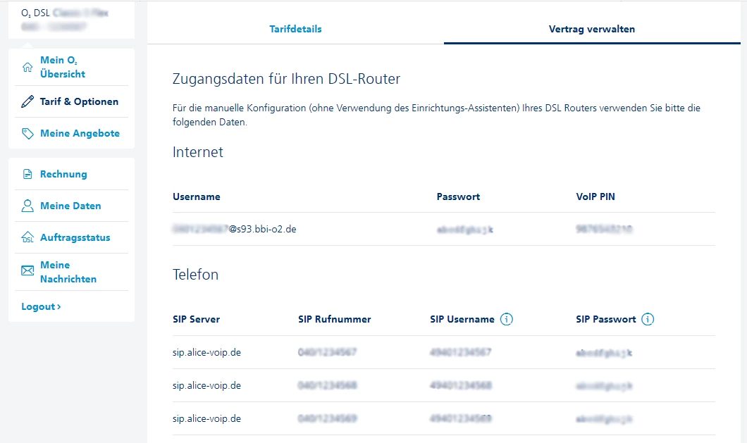 was steht denn unter Mein O2 für Zugangsdaten: