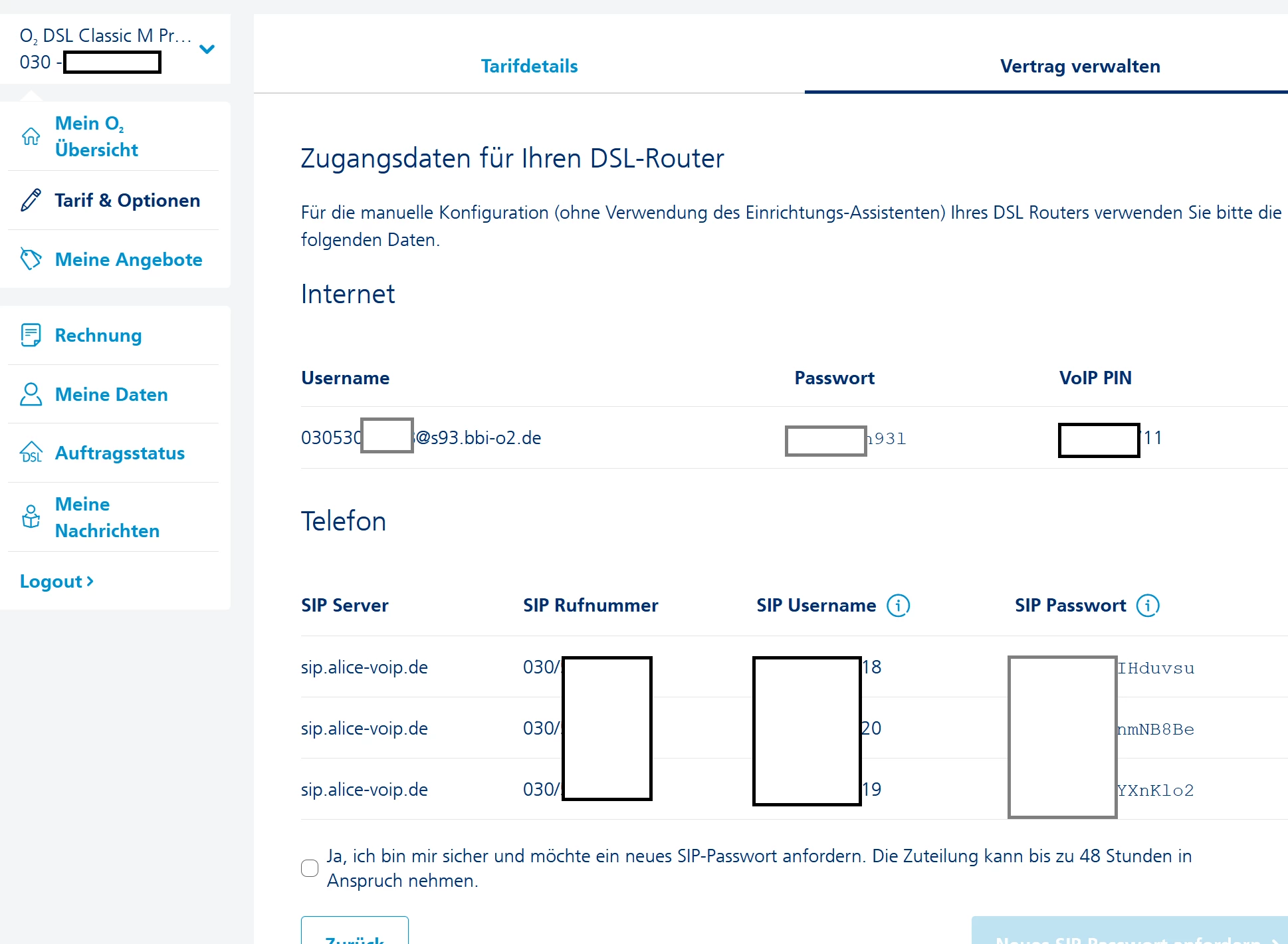 Mir wären neue Zugangsdaten lieber. Bekomme ich die Zugangsdaten neu an der Nummer?