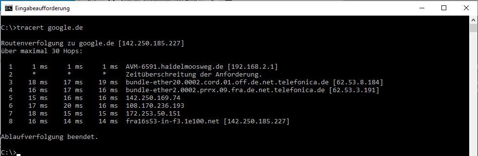 Bei tracert ist grundsätzlich der zweite Hop tot: