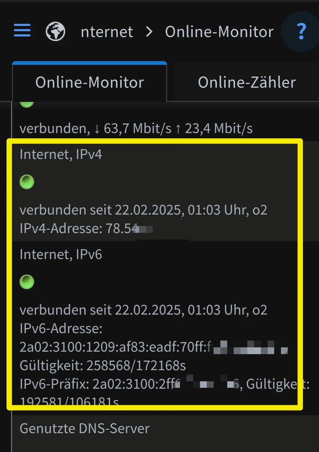 Wenn ​@o2_Solveig schreibt das IPv6 aktiv ist, dann ist damit IPv4 & IPv6 gemeint.