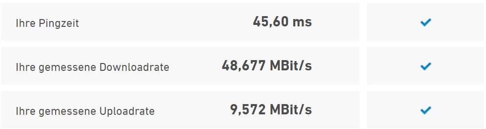 Passt also ungefähr zu meinem 50 MBit/s-Vertrag. Kann mir ja mal ein Upgrade auf 100 MBit/s überlegen, vor allem der Upload mit 40 MBit/s wäre interessant:wink: