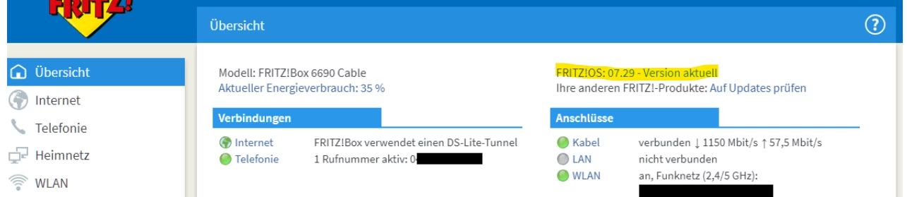 Magst du einmal nachschauen, welche Firmware (FRITZ!OS) auf deinem Router installiert ist? Hier findest du die Informationen auf fritz.box: