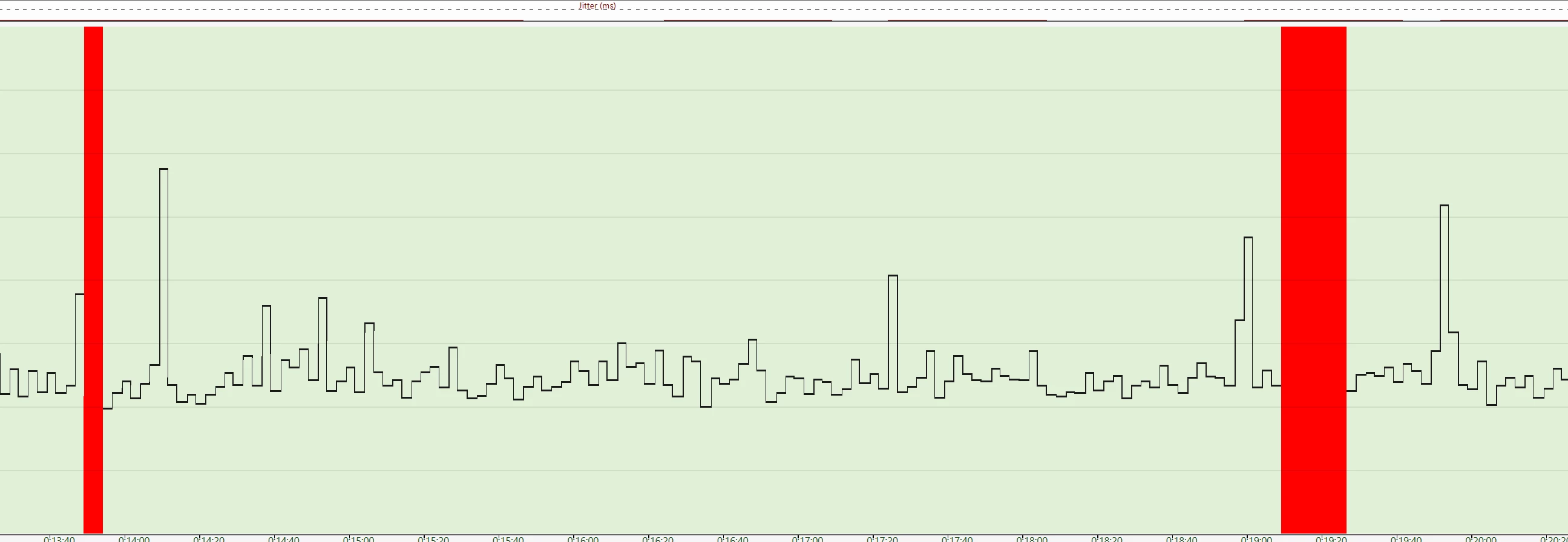 Desweiteren hat PingPlotter eine sehr häufige Anzahl an Packet Verlust aufgezeichnet.