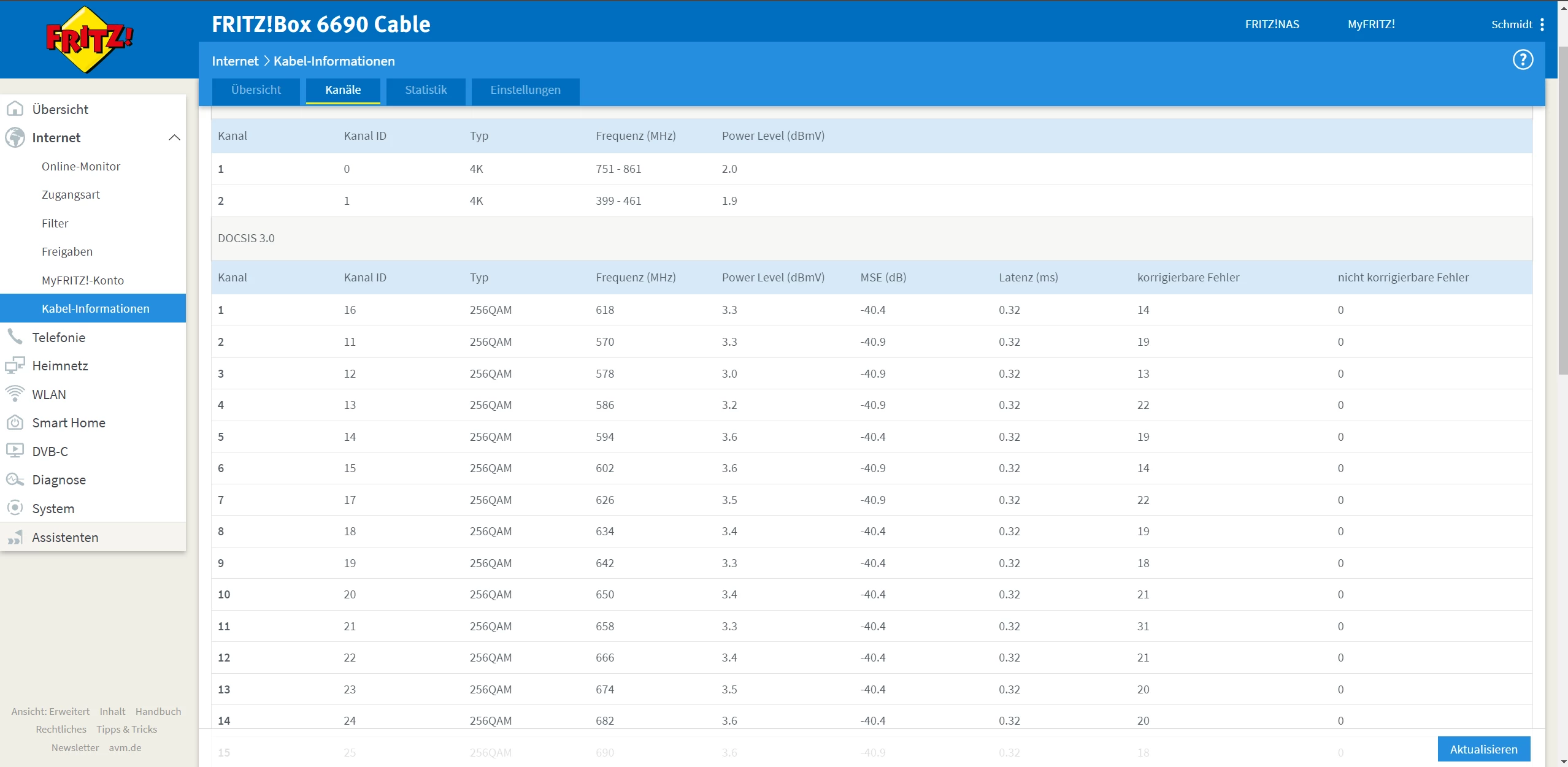 Aktuell 19 korrigierbare Fehler, meinem Router ist die Frequenz “570 mhz” zugeteilt.