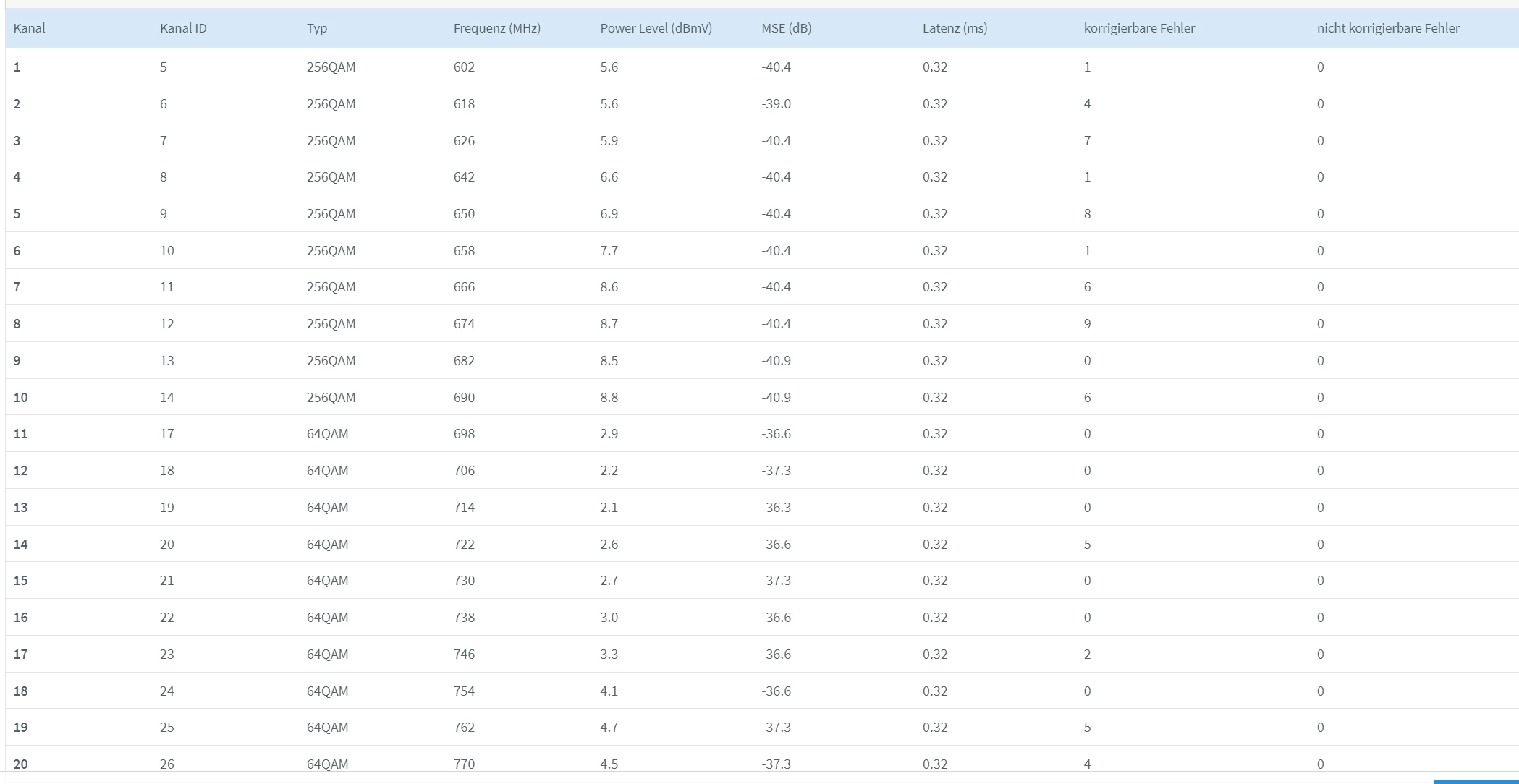 Wie sieht es mit deinem Kabelanschluss aus, hat sich hier in der vergangenen Woche noch etwas geändert oder kommt es weiterhin zu den Abbrüchen? Sind die nicht korriegierbaren Fehler nach deinem Neustart weiterhin bei 0 oder treten diese auch wieder auf?