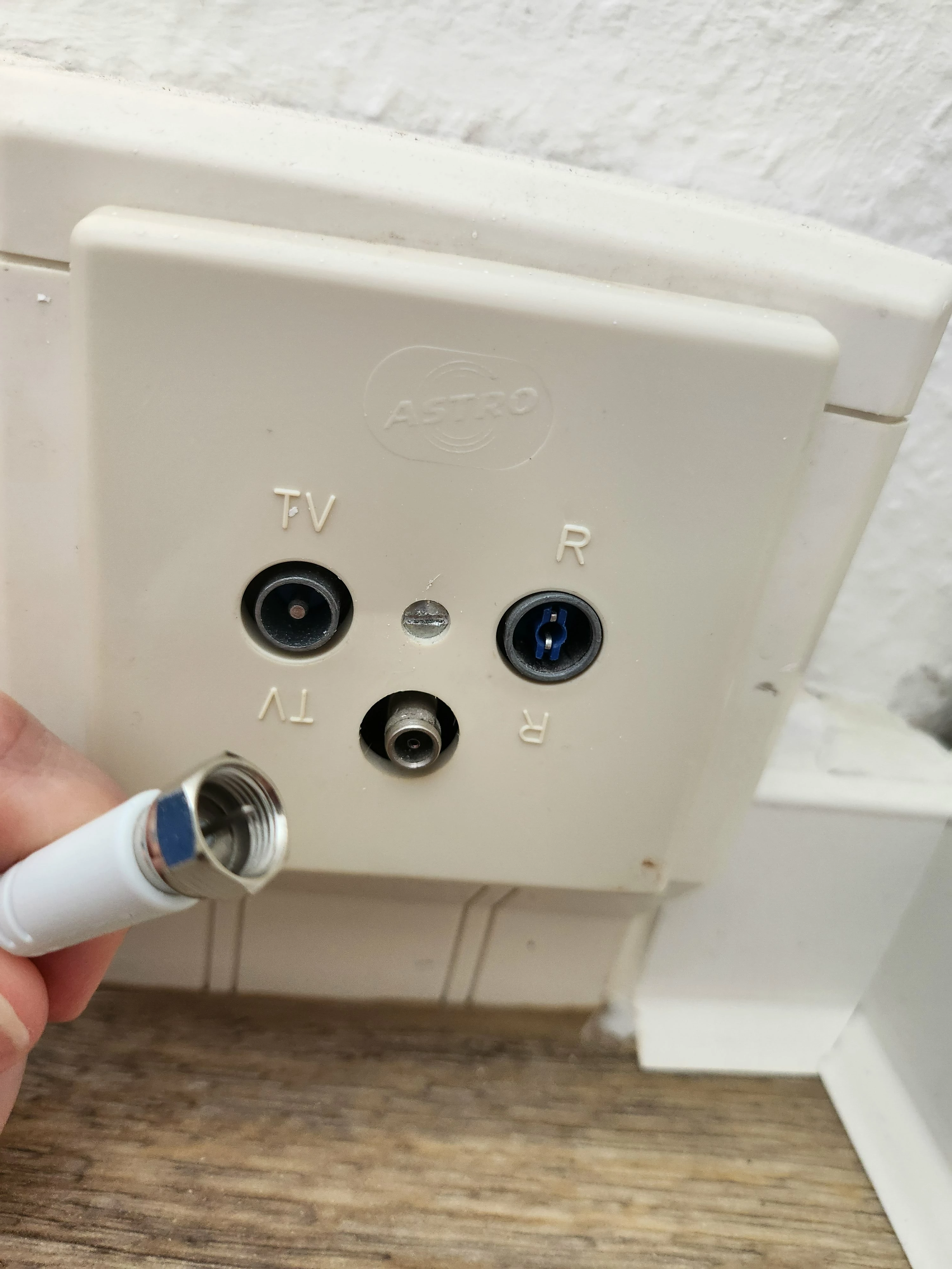 Ich habe zwar 3 löcher (TV, R und unten drunter unbeschriftet), aber da passt das Gewinde vom Router nicht dran.
