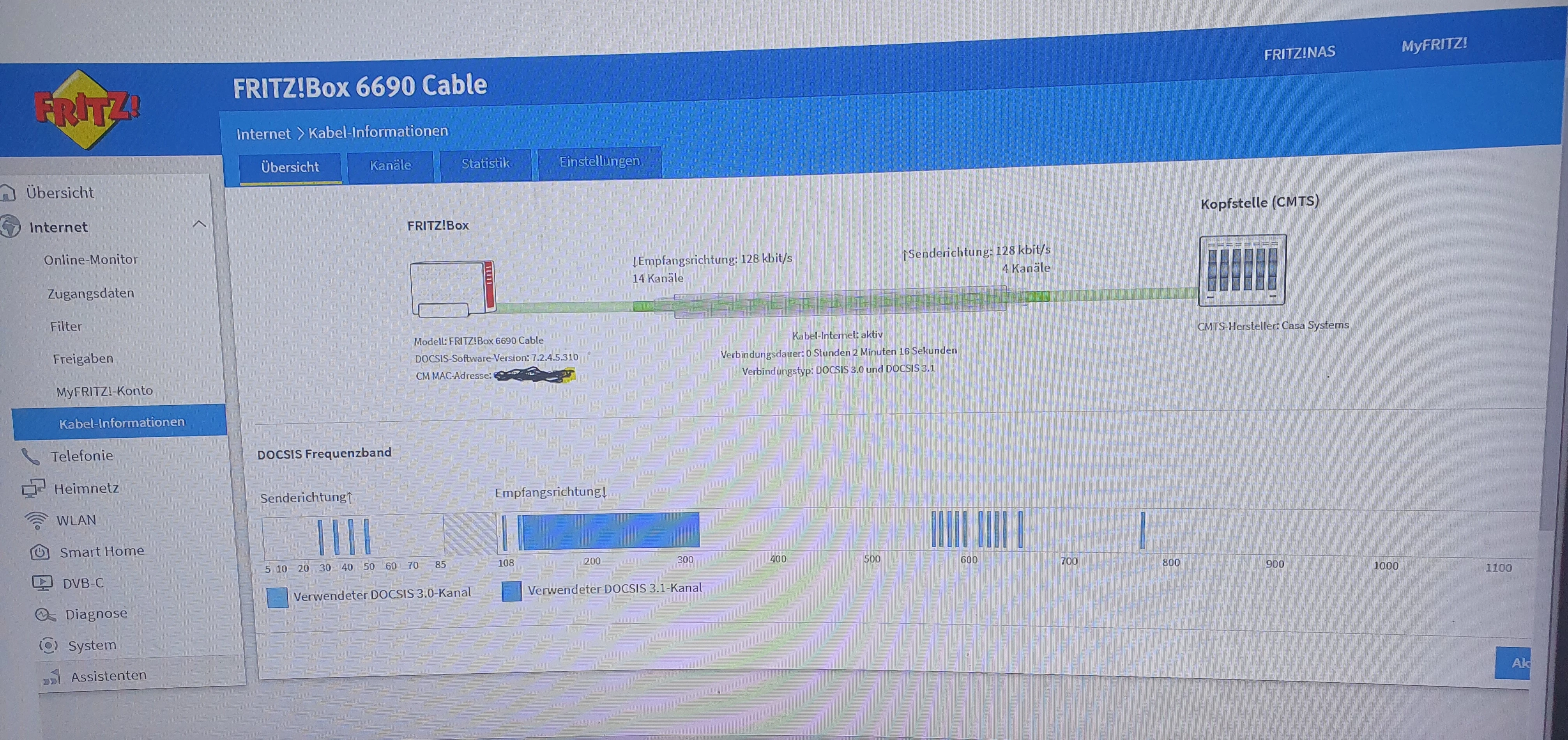 Mein Verdacht, das System hat Deine CM-MAC (noch) nicht eingerichtet bekommen und damit wird Dein Anschluss nicht richtig provisioniert.