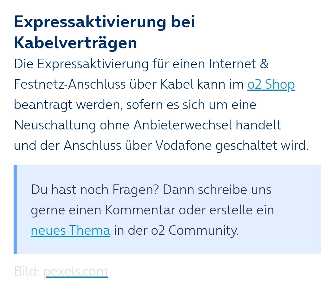 Der Router muss hierfür außerdem auch bereits vorhanden sein, ist er denn inzwischen schon angekommen? Wenn dir nach dem Anschließen die o2 Startseite angezeigt wird, kann eine Expressaktivierung beauftragt werden.