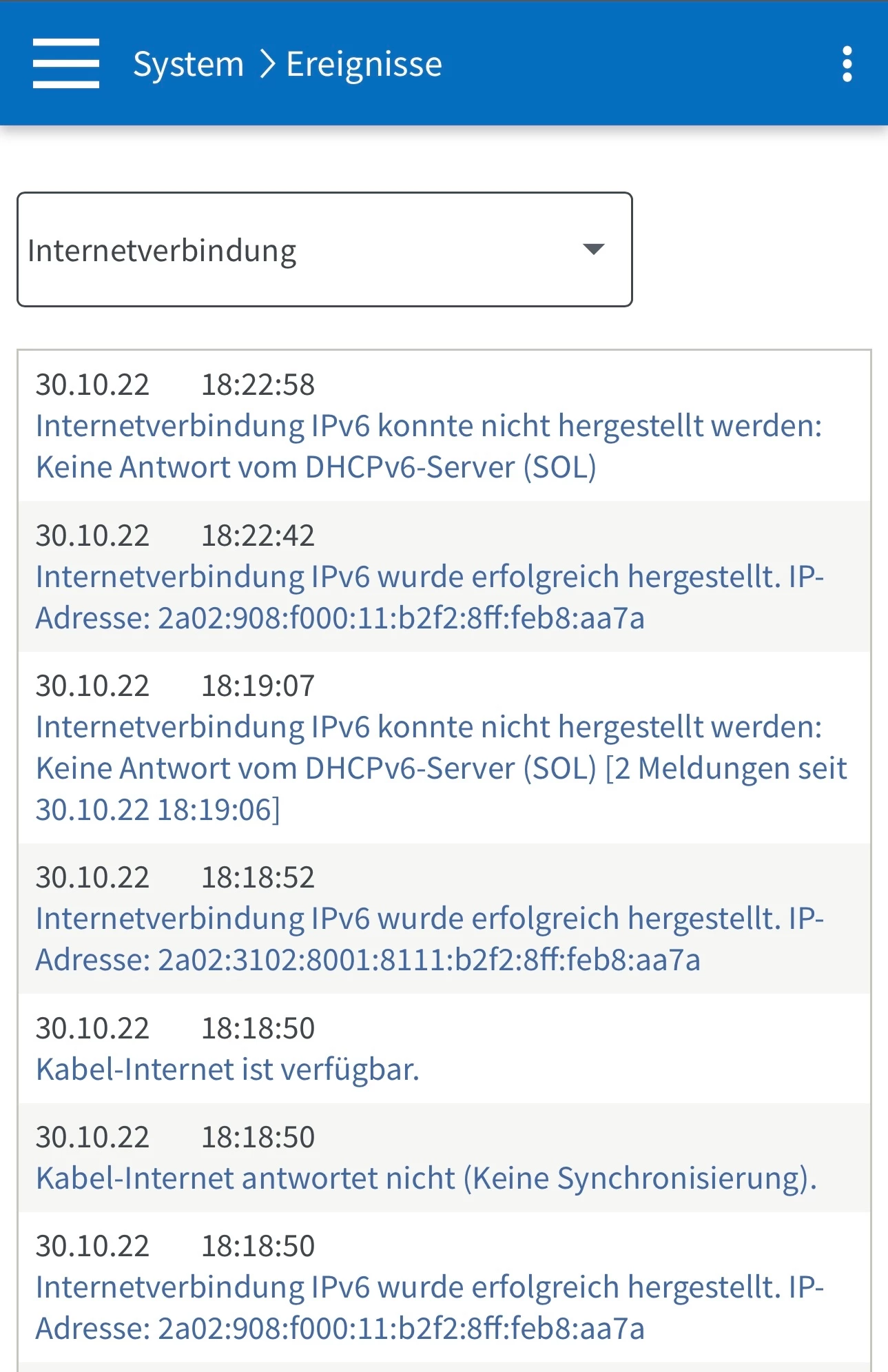 @Tobi1402 Was steht in der Ereignis Anzeige der Fritzbox? Irgendwas mit „AFTR Server .. kann nicht aufgelöst werden“ oder anderes?