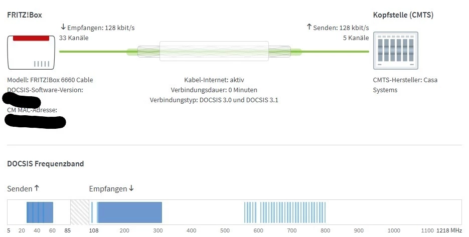 Da du eine FRITZ!Box hast poste doch mal bitte die Übersicht der Verbindung (Internet>Kabel-Informationen).