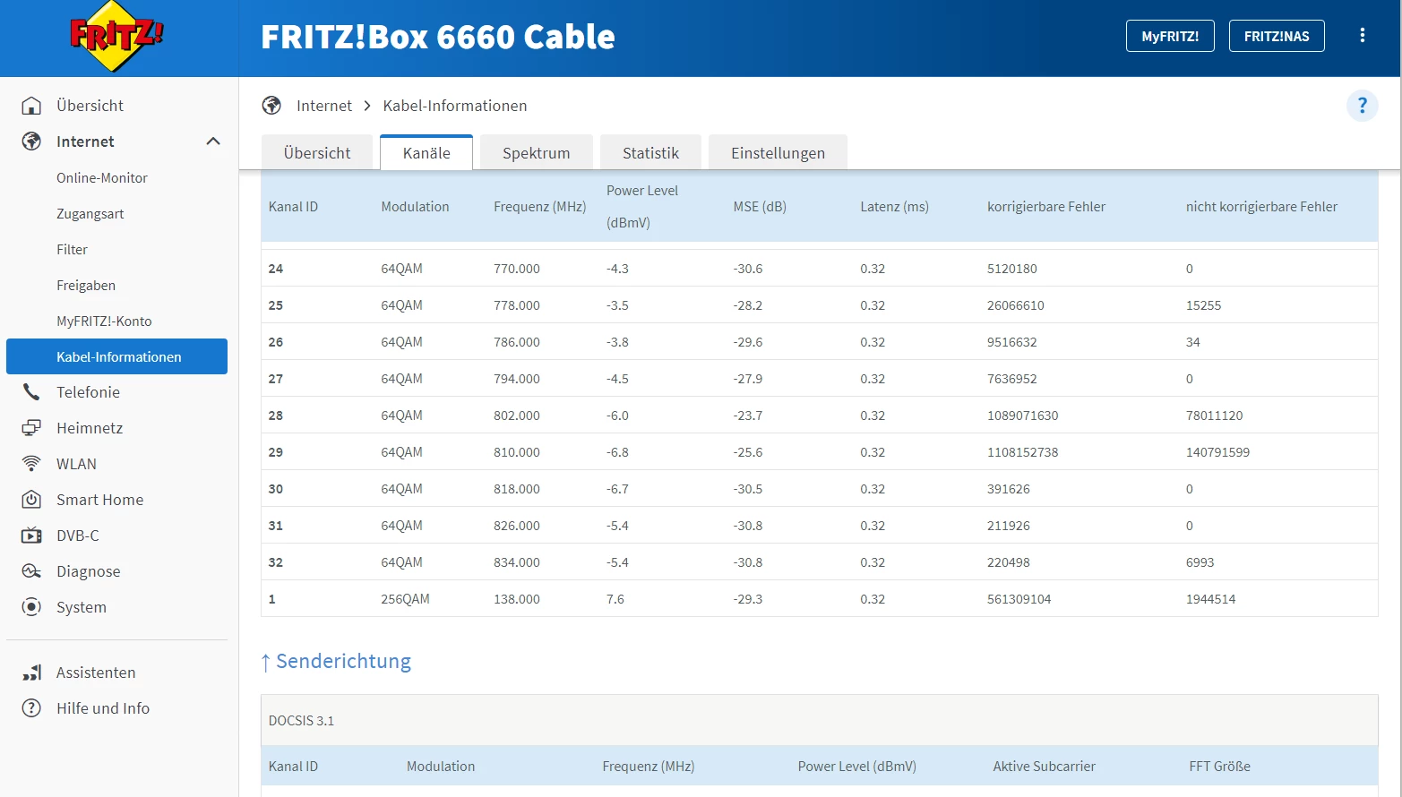Du nutzt eine Fritzbox? Dann poste mal die Werte der Kanäle.