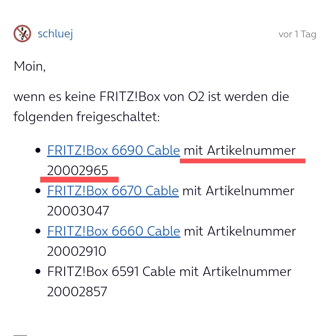 Warst Du vorher beim Vorleister (z. B. Vodafone) und hast/bist dann zu O2 gewechselt? Das wäre schon einmal gut zu wissen. Deine Fritte jedenfalls macht keine Probleme.
