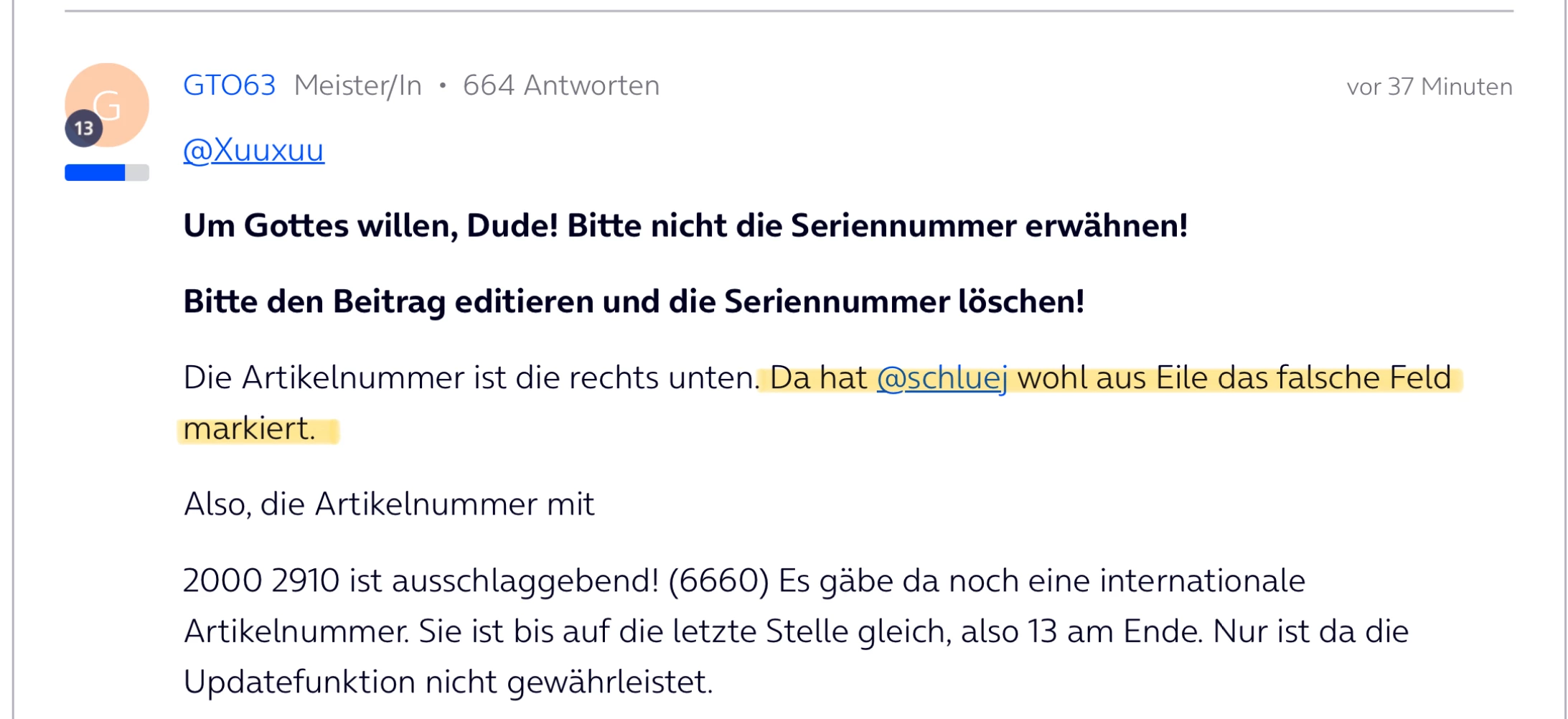 Die Artikelnummer ist die rechts unten. Da hat ​@schluej wohl aus Eile das falsche Feld markiert.