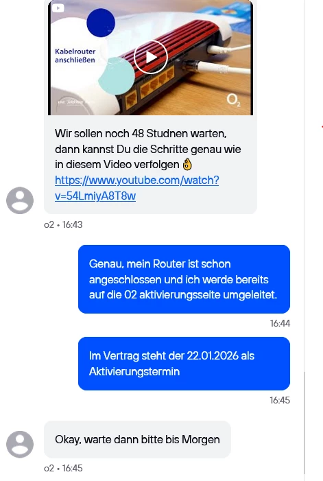 Habe eine einen O2 Home XL Vertrag abgeschlossen und meinen Aktivierungstermin auf dem 22.01.26 gesetzt (heute).