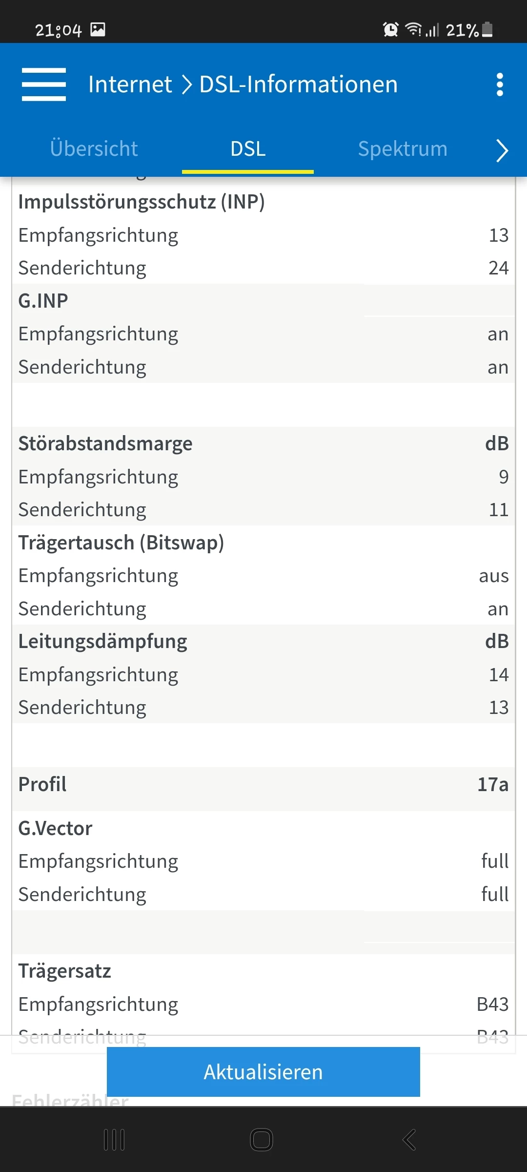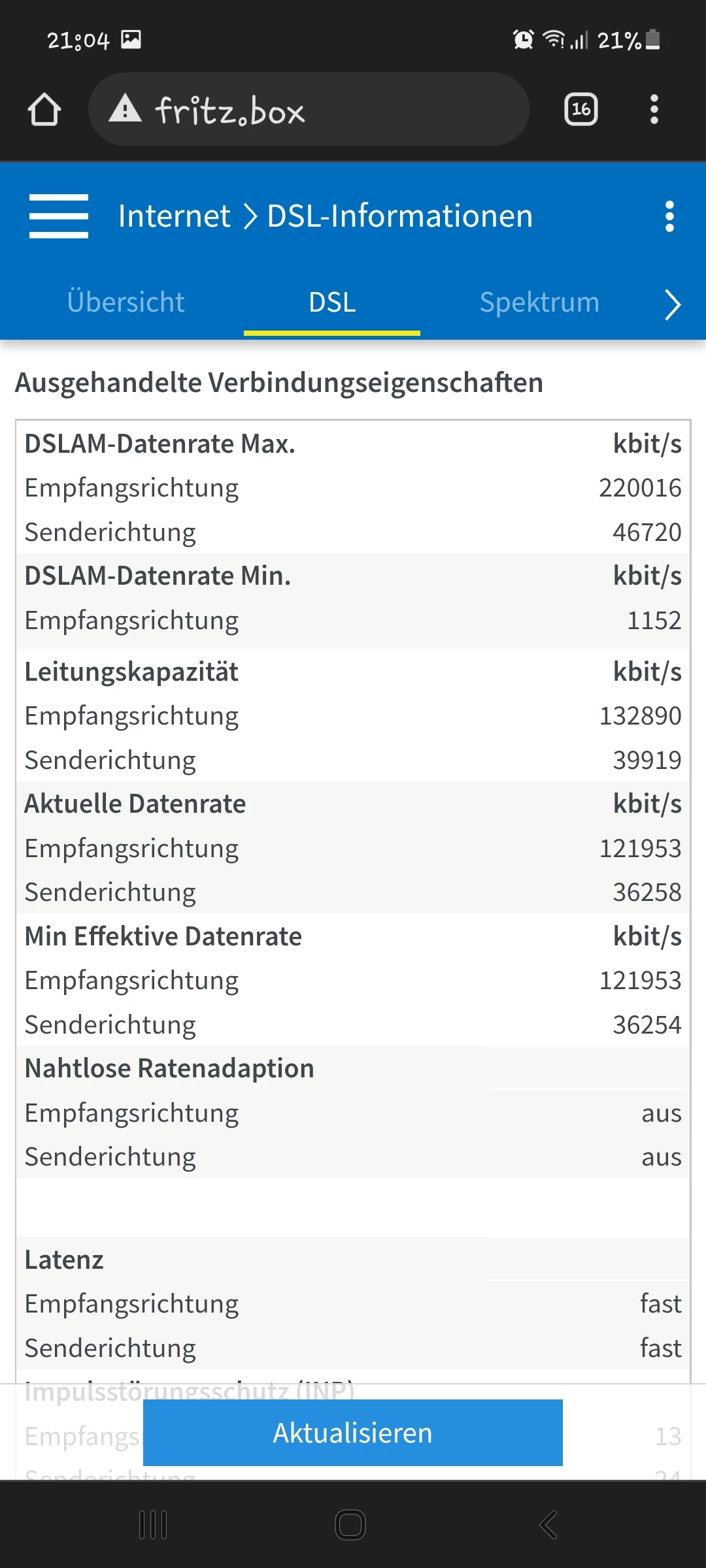Poste doch mal einen Screenshot der Tabelle “DSL” unter “DSL-Informationen”.