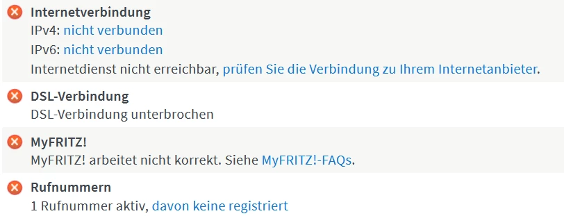 ich habe seit gestern Morgen kein Internet mehr. Als ich nachgeschaut habe, ist mir aufgefallen, dass an meinem Router die Info-Lampe dauerhaft rot leuchtet und die Power/DSL-Lampe ständig blinkt. Eine DSL-Verbindung kommt gar nicht zustande.