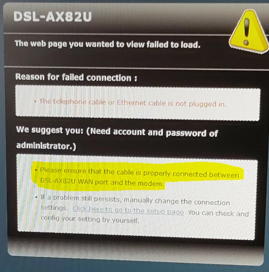 Keine Verbindung dsl network home m flex mit ASUS DSL-AX82U.