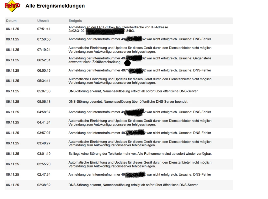Mit der Einrichtung der Telefonie hat dieser Fehler m.E. nichts zu tun, ​@GTO63. Die Rufnummer ist korrekt konfiguriert und der Router stellt die Telefonie dann ja auch nach einiger Zeit wieder her.