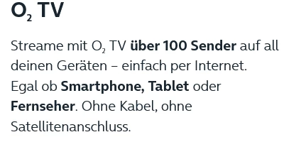 Jedenfalls läuft bei mir o2TV astrein, egal ob per LTE oder Kabel oder DSL. Ich vermute fast, das Du übersehen hast, das das ein Internet-TV-Angebot ist.