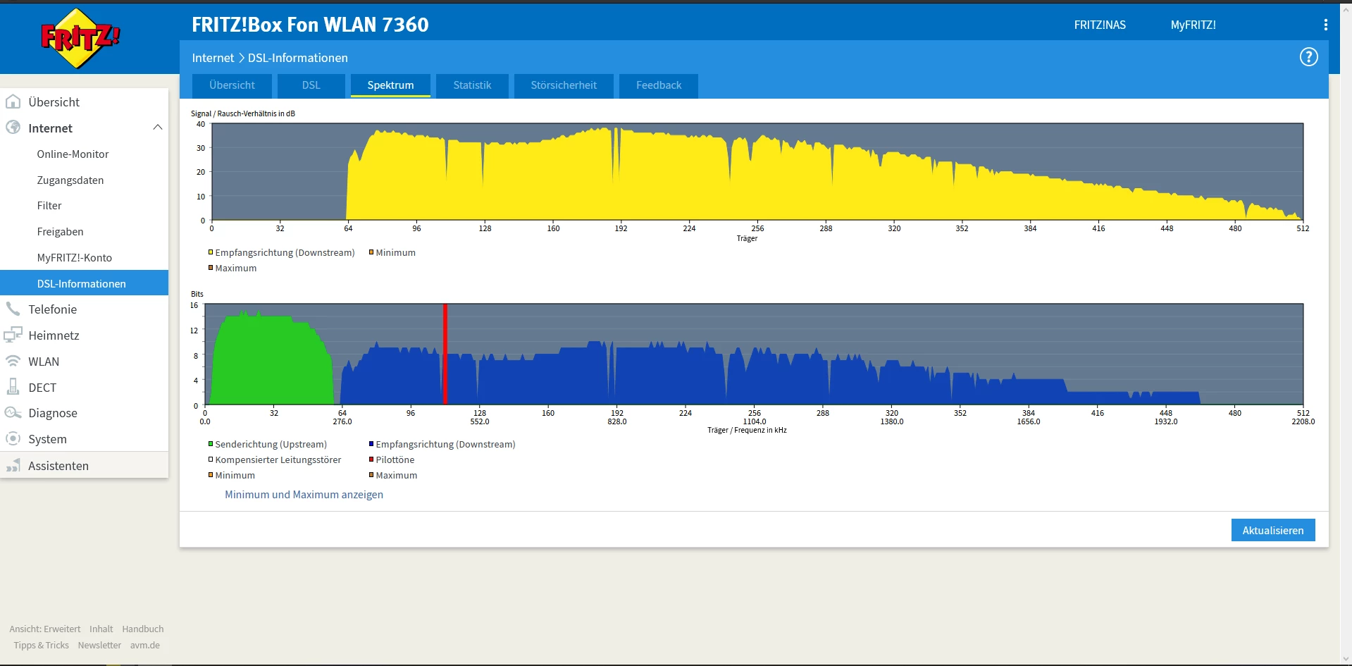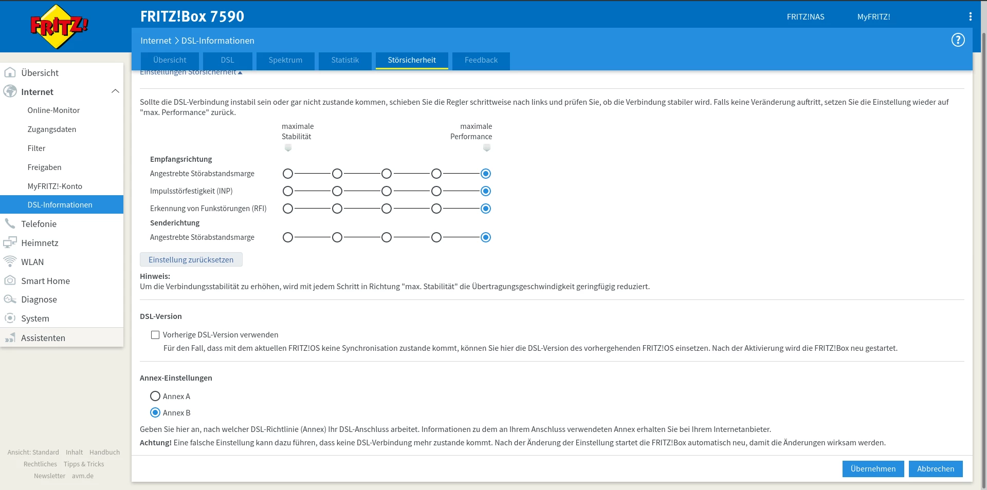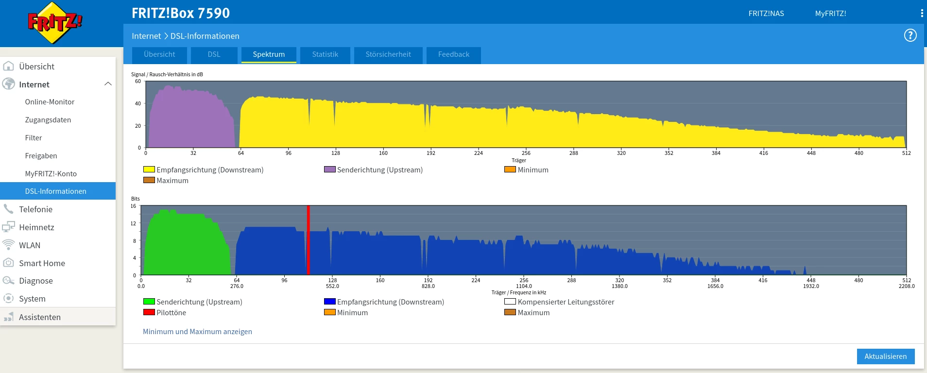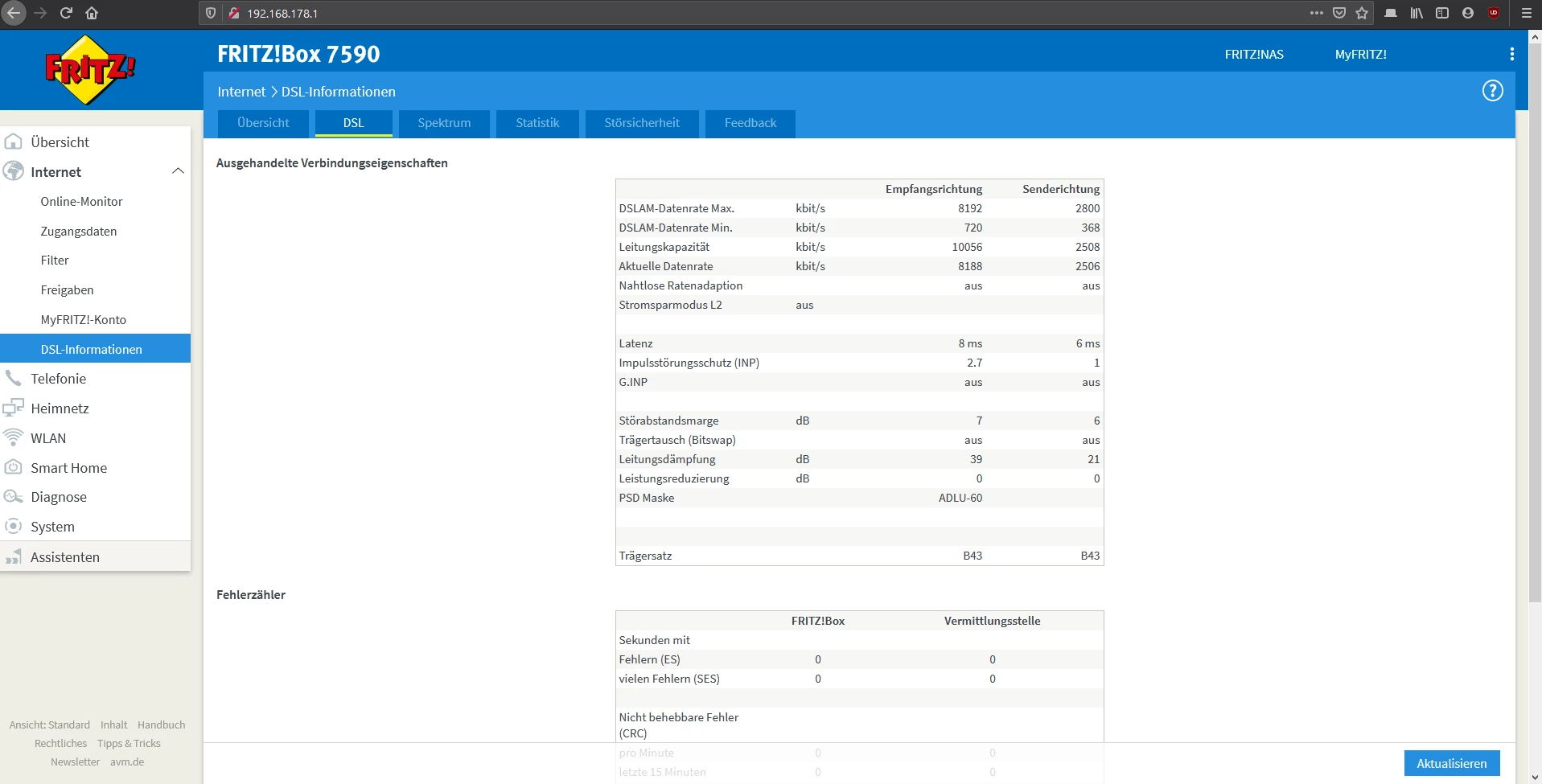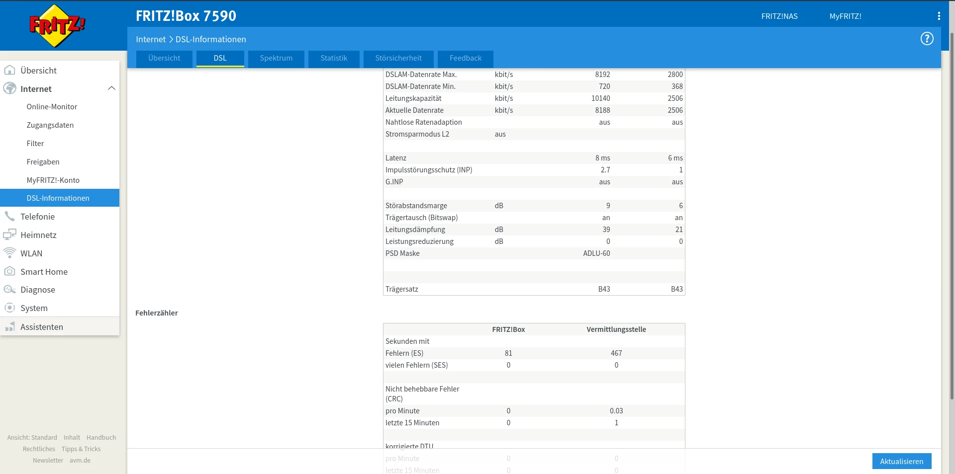 Kannst mal einen Screenshot der DSL-Tabelle mit aktuellem Status Quo posten? Also mit der 7590 mit Störeinstellungen überall auf “max Performance” und ohne Erdungskabel am APL?