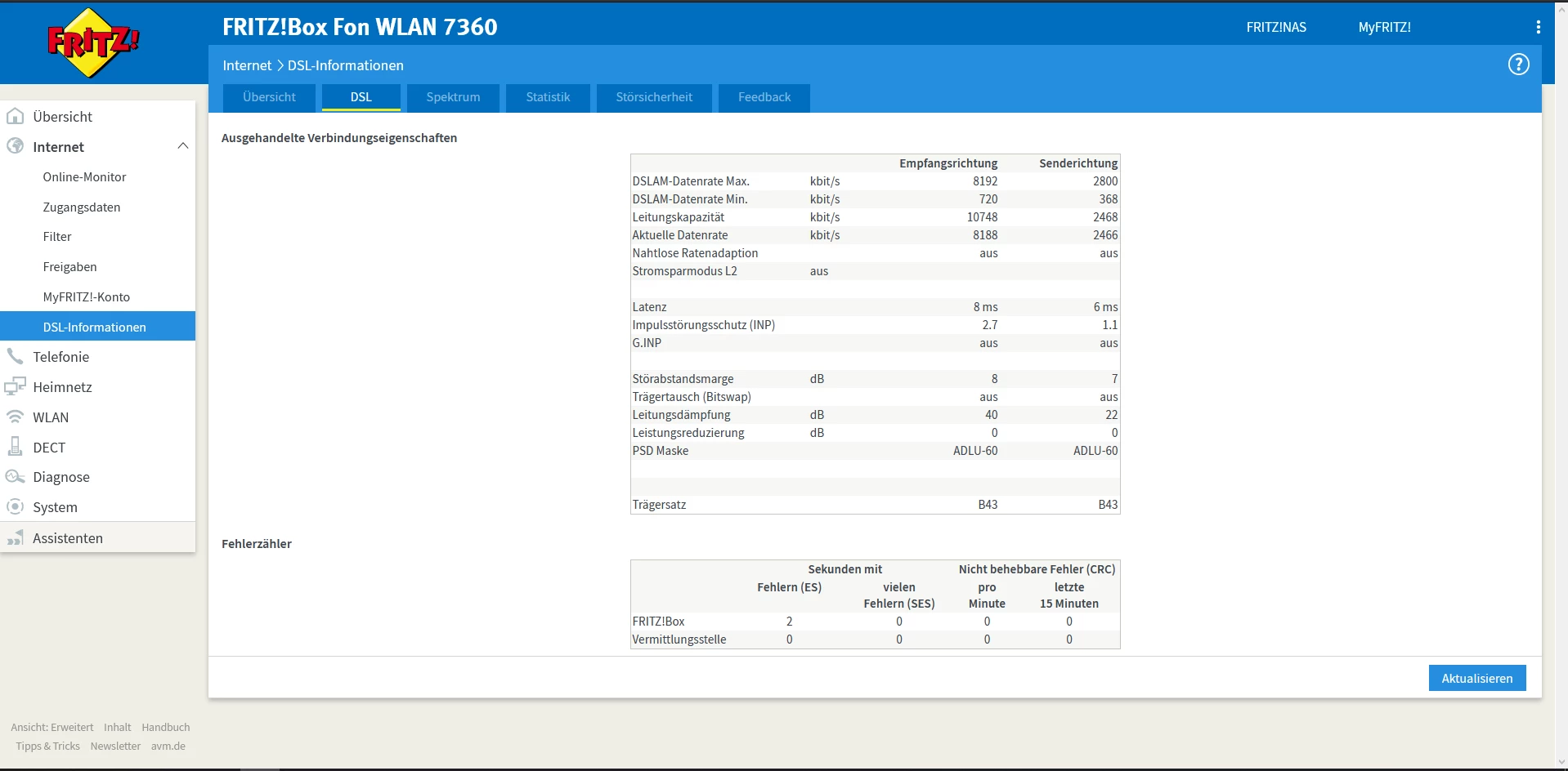@szhfgnm Auf der Fritzbox 7360 ist Firmware 06.86? Eigentlich läuft diese relativ stabil an ADSL Anschlüssen. Original Kabel wird verwendet? In der Wohnung ist sicherlich nur eine TAE Dose?
