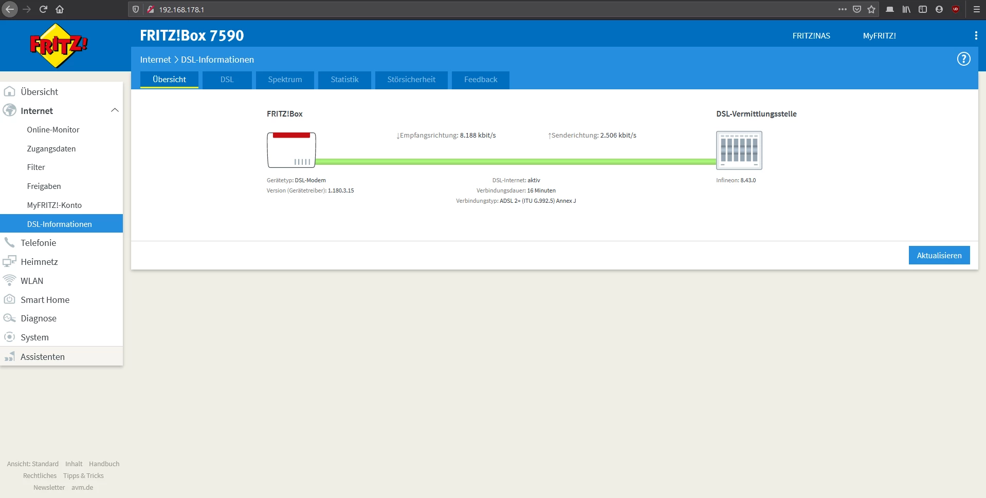 DSL Infos bei normalem Betrieb