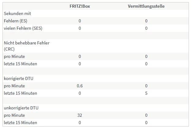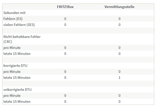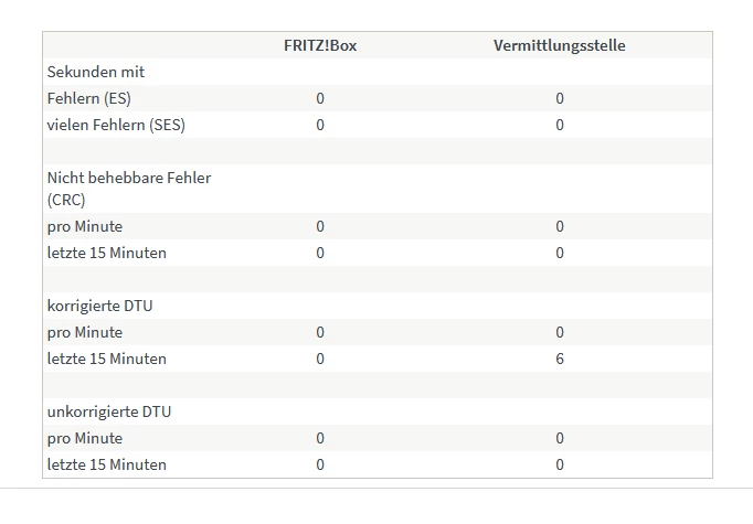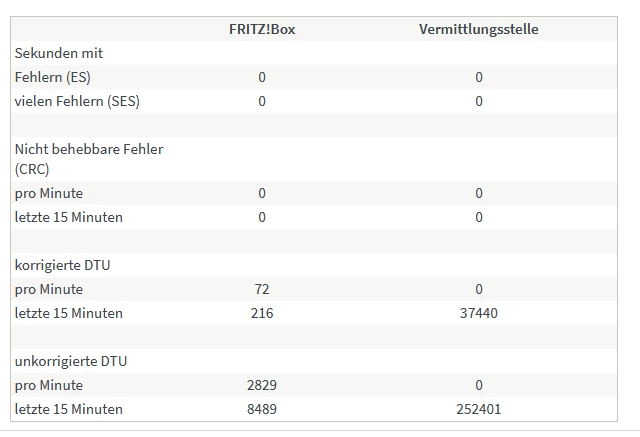 Wie man sieht, 6 Fehler bei der Vermittlungsstelle für korrigierte DTU in den letzten 15 Minuten. Leider kann man diese Messung nicht auf 24 Stunden ausweiten, das würde aussagekräftiger sein.