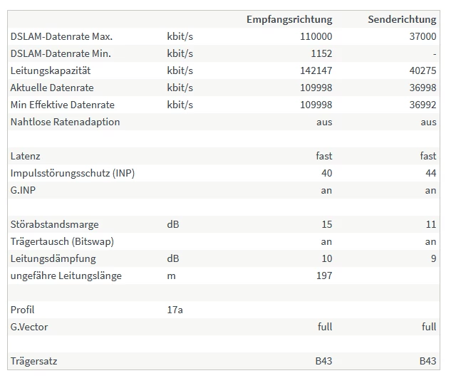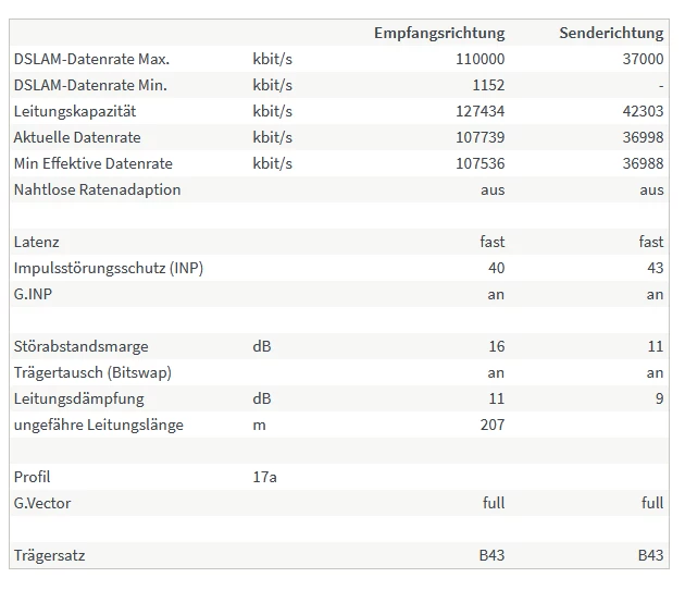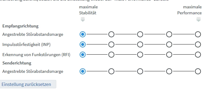 Stelle bitte alles auf “max. Performance” und lade dann einen weiteren Screenshot der Tabelle unter “DSL” hoch. Danke.