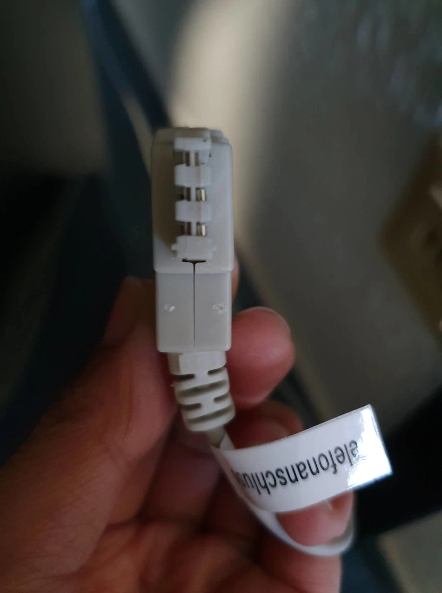 Entschuldigung für die späte Antwort. Das Problem ist immer noch gültig, die Internetgeschwindigkeiten betragen immer noch 8 MBps. Ich bin mit dem mitgelieferten Router und ohne zusätzliche Hardware direkt an die Telefonbuchse angeschlossen. Bitte beachten Sie die beigefügten Abbildungen des Modemkabels zur Wohnungssteckdose. Ich kann das Kabel nur in den mittleren Steckplatz stecken, da es die einzige passende Buchse ist.