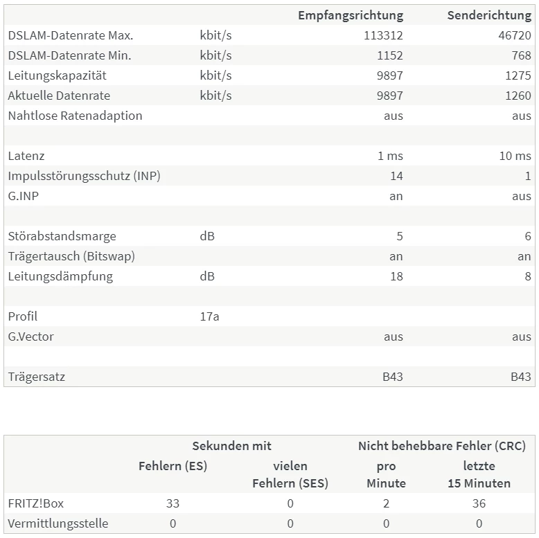 Wenn Du magst, schicke uns auch gerne einmal einen Screenshot von der Routeroberfläche aus dem Bereich Internet/DSL Informationen/ Übersicht und DSL machen und hier einstellen, vielleicht lässt sich da ja schon etwas erkennen :-)