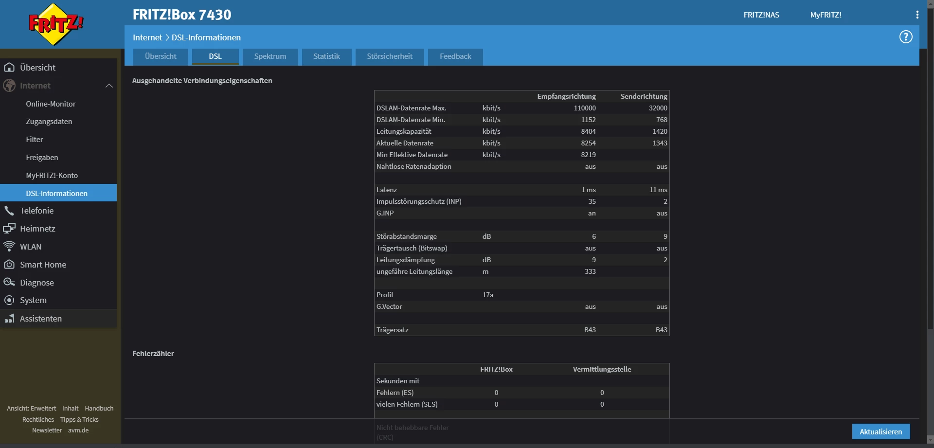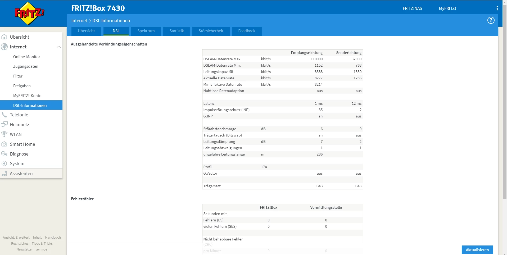 bei deinem Anschluss sehen wir keine Leitungswerte, da du das sogenannte TR 069 in deiner Fritzbox nicht aktiv hast. Deswegen können unsere Kollegen auch nicht sehen, wie deine aktuell tatsächlichen Leitungswerte sind. Für die 7430 findest du auf der Seite von AVM eine Anleitung, wie du diese sichere Übertragungsrate aktivieren kannst.
