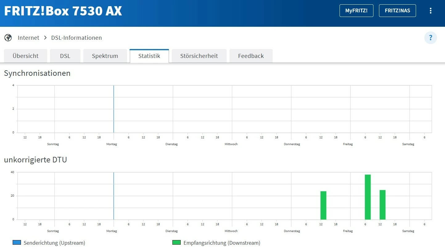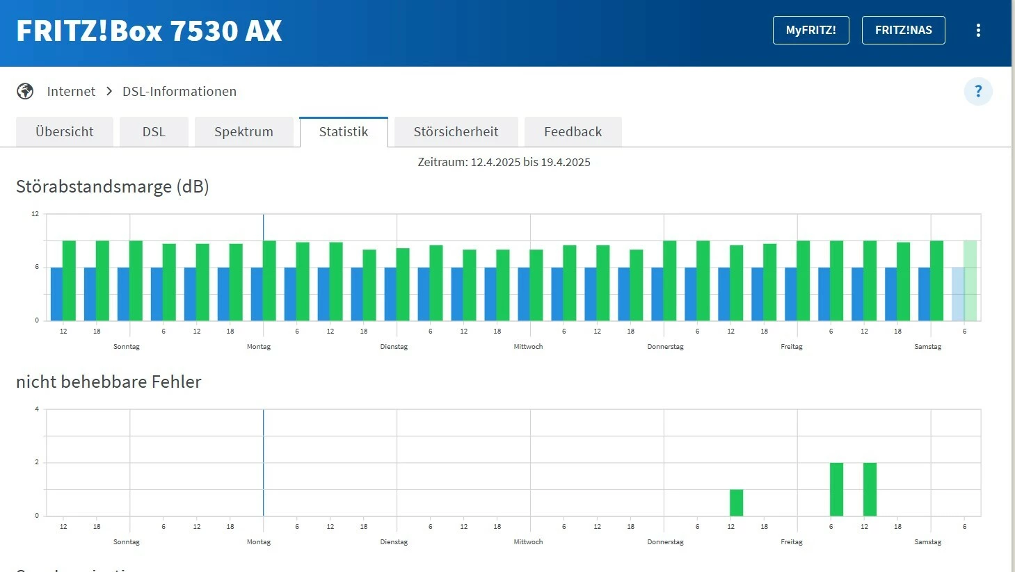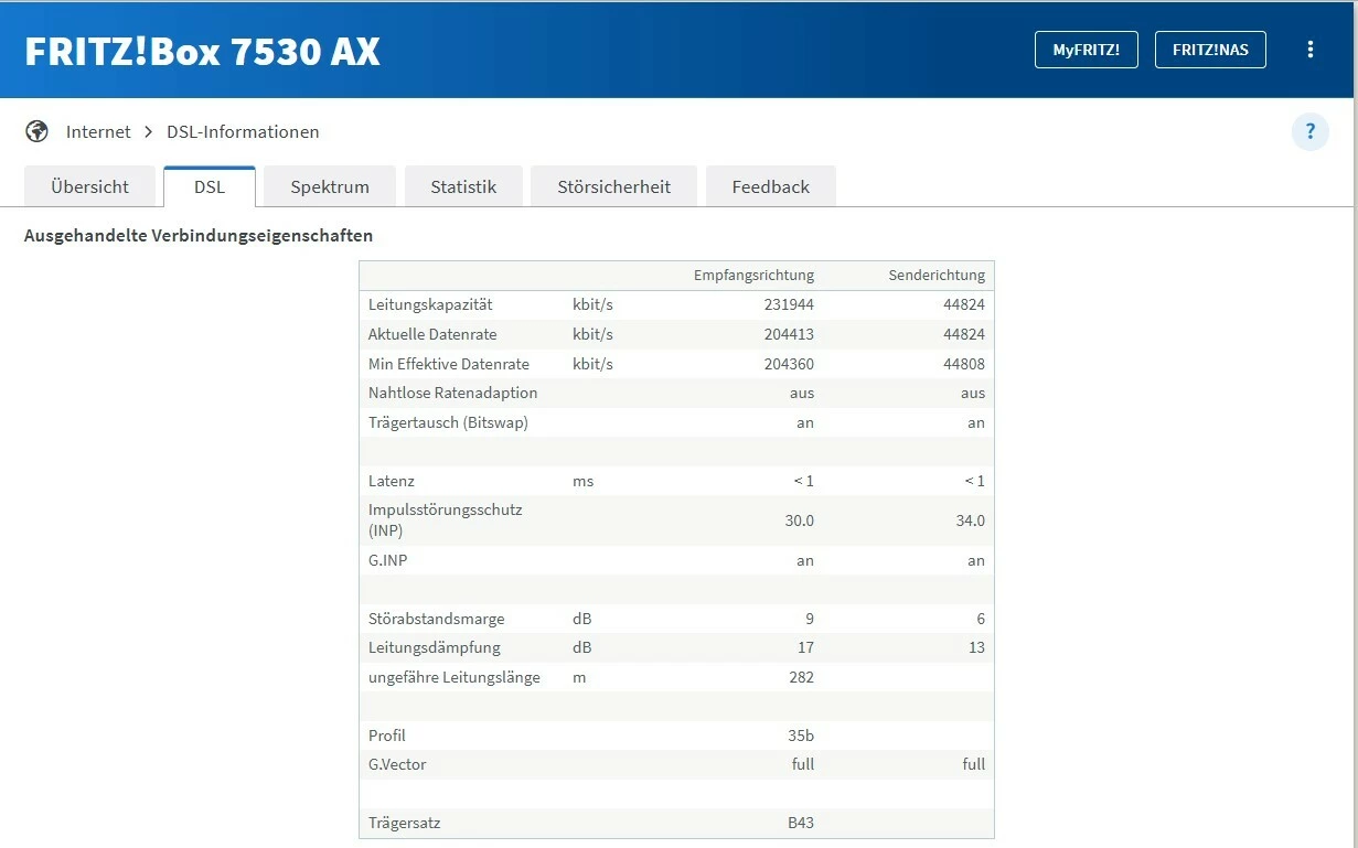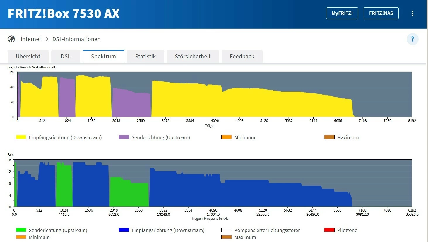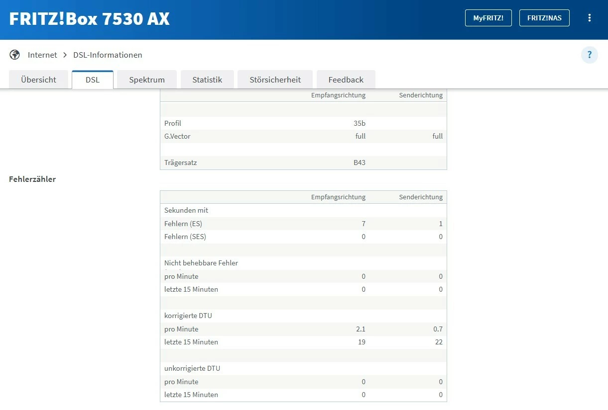 Dann mal bitte die Seiten: Übersicht, DSL, Spektrum und Statistik als Bild hochladen.