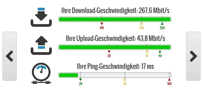 Die 100Mbit Leitung hatte nie Probleme und lief immer auf der gewünschten Geschwindigkeit.