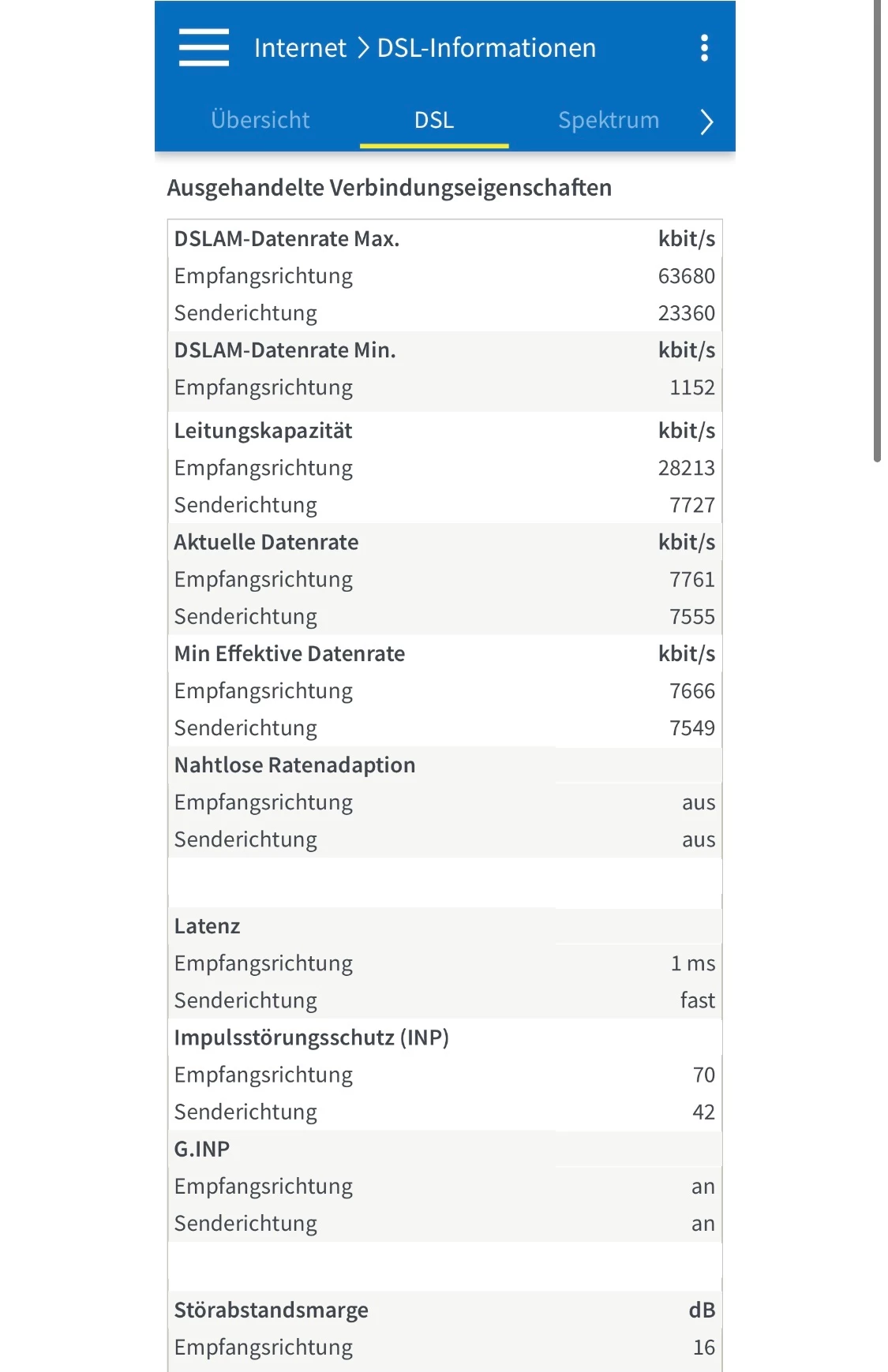 Das ist in der Regel schnell behoben und sollte von der Telekom per Fernwartung neu gestartet werden können. Steht also etwas weiter unten, unter Latenz usw. Da kommt der Eintrag G-Vector und der wird auf “aus” stehen.