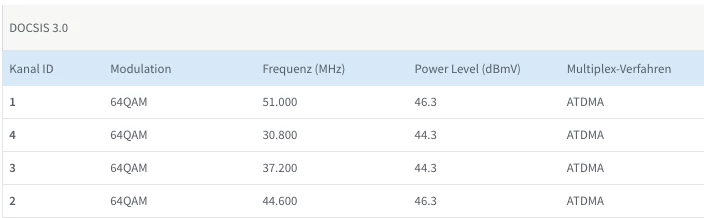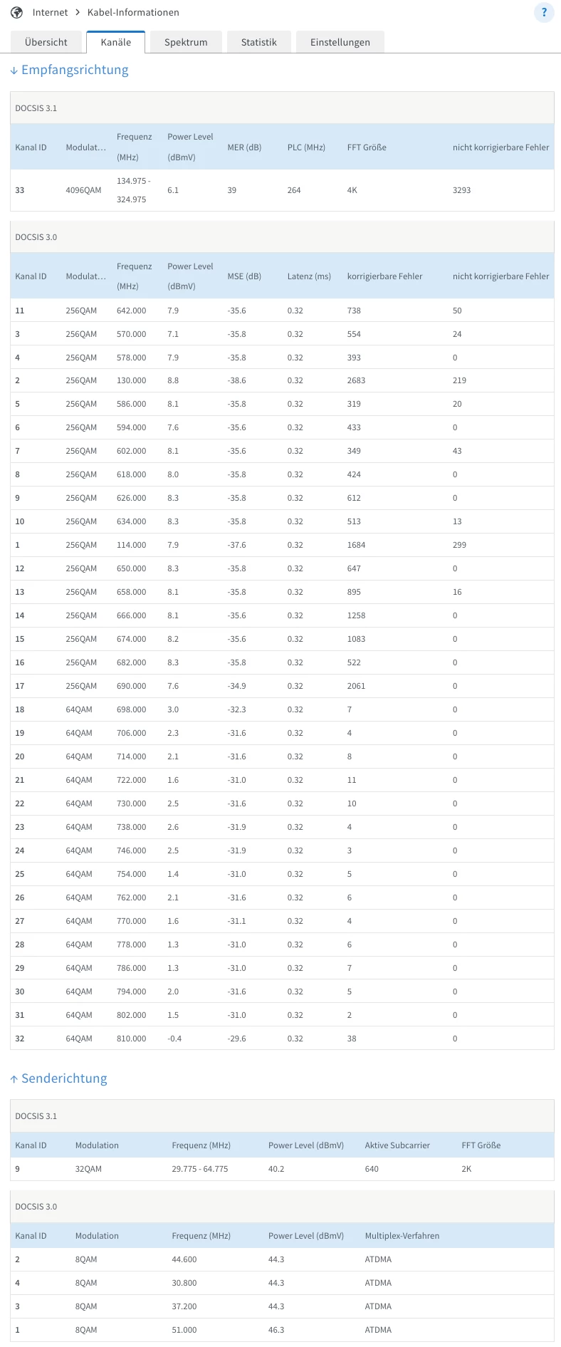 Der Rückkanal ist auf jeden Fall zu niedrig in der Modulation und das auf allen Kanälen.