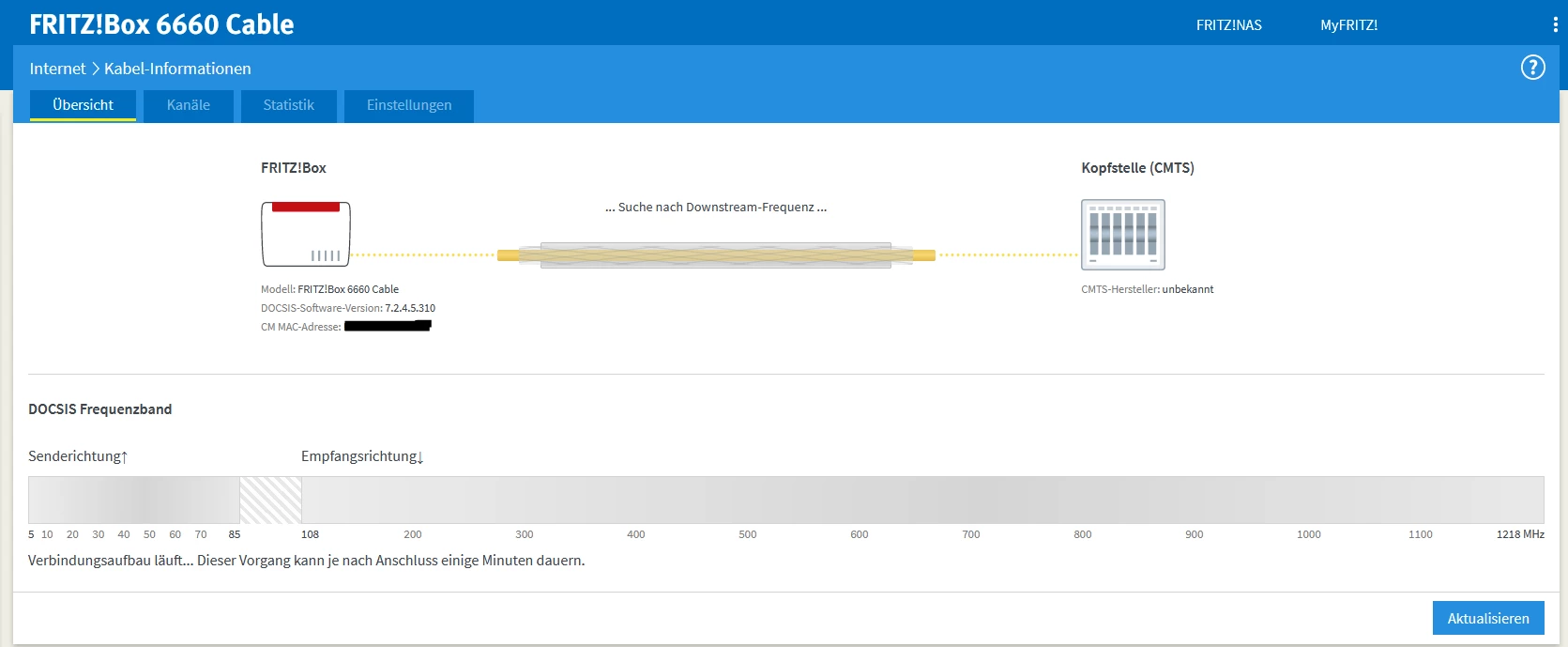 Angeschlossen ist alles wie es sein soll. Kabel TV kann ich auch empfangen. Die CM MAC Adresse der Firtzbox (Unterseite der Box) habe ich O2 vor vier Tagen mitgeteilt. Die Fritzbox ist neu gekauft, keine gebrauchte!