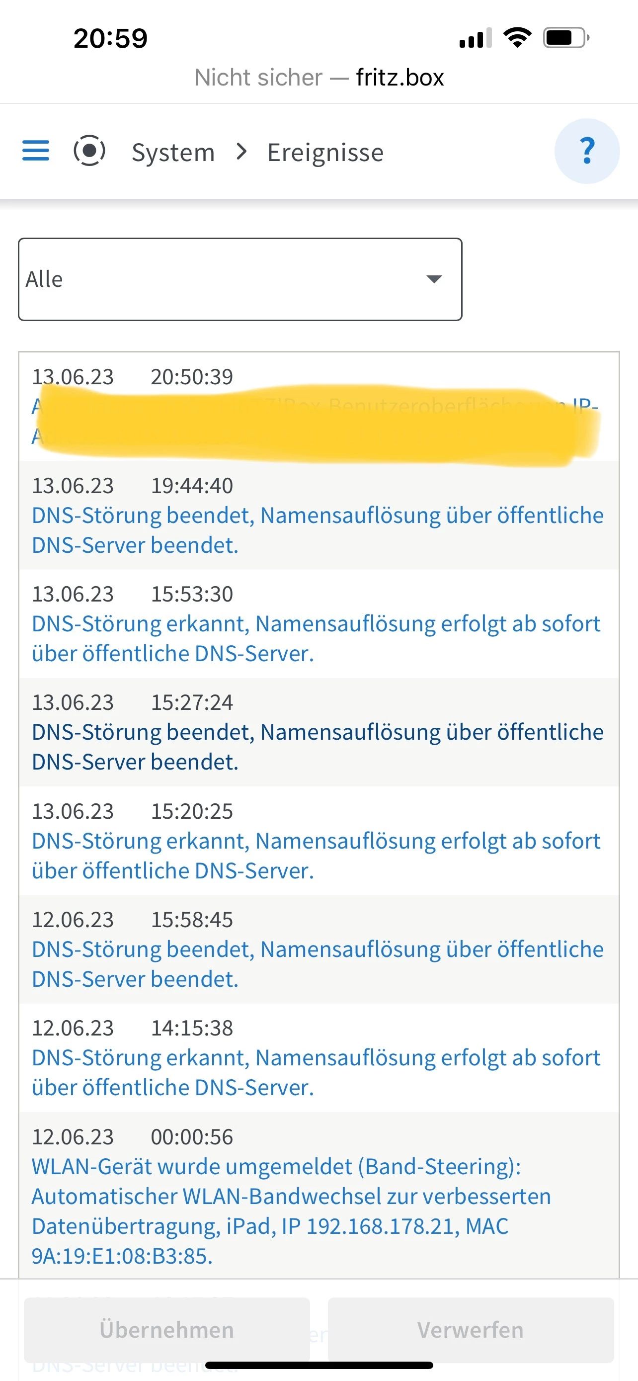 Die Meldung „DNS-Störung beendet, Namensauflösung über öffentliche DNS-Server beendet.“.