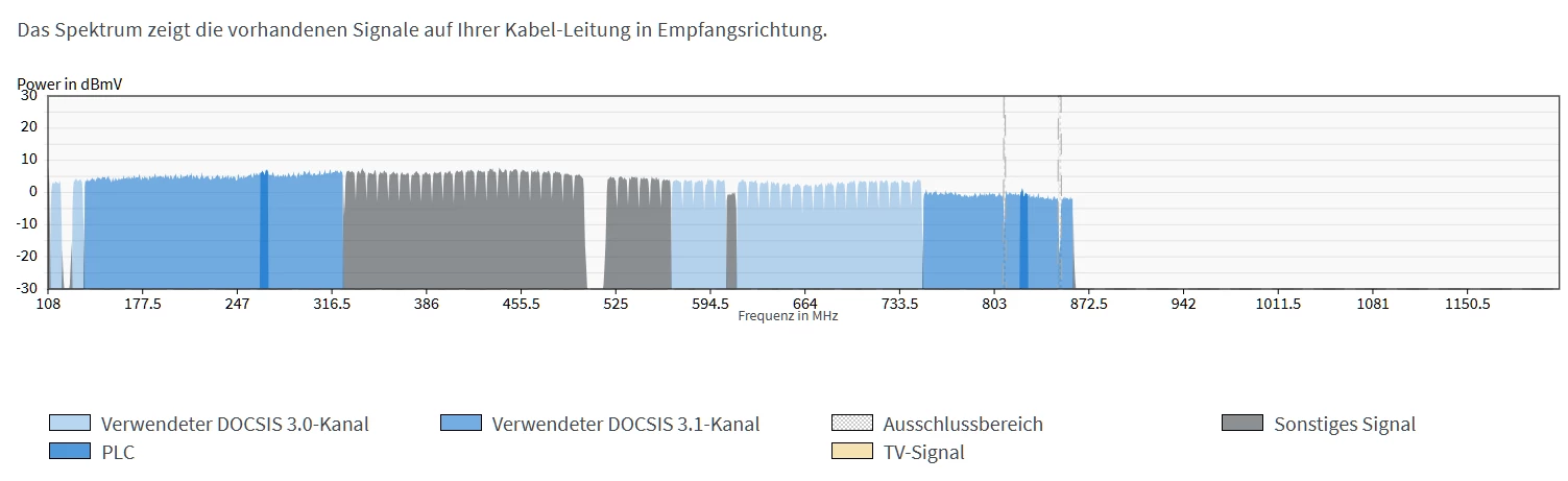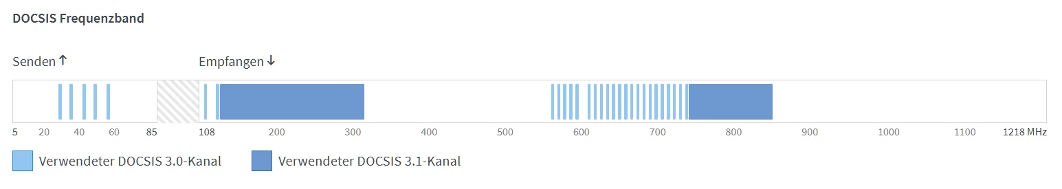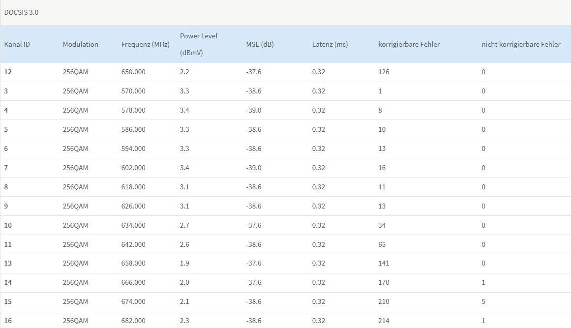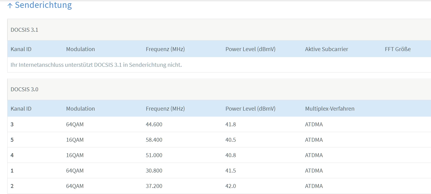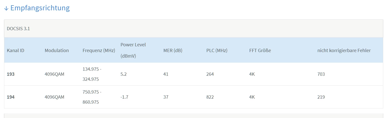 Dass Soll in Empfangsrichtung ist 4096QAM, für Docsis 3.1 (D3.1) und 256QAM für Docsis 3.0 (D3.0)).