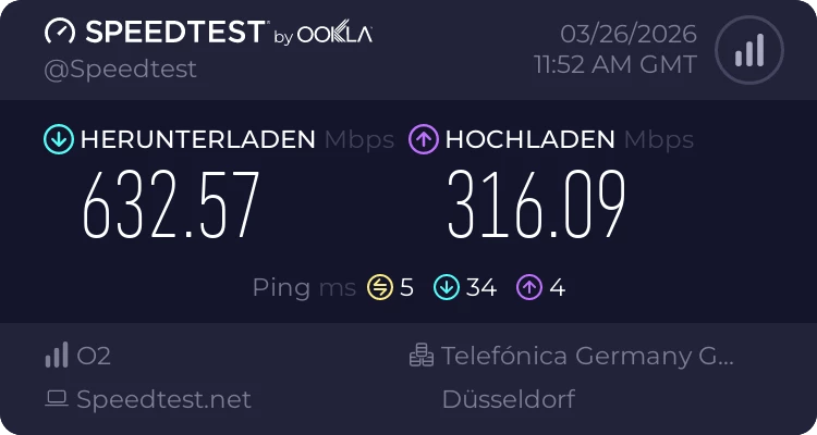Nachdem auch der GF-TA installiert war, erfolgte sieben Tage später die Freischaltung. Nach dem Eintragen der Modem-ID hat die Aktivierung sofort und ohne Probleme funktioniert. Seitdem läuft der Anschluss einwandfrei. Mit den Geschwindigkeiten bin ich sehr zufrieden, und auch das Peering überzeugt mich absolut. Gerade das Peering war für mich am Ende sogar eines der ausschlaggebenden Argumente für o2 (Danke an unzählige reddit-Nutzer die o2 dahingehend empfohlen haben)