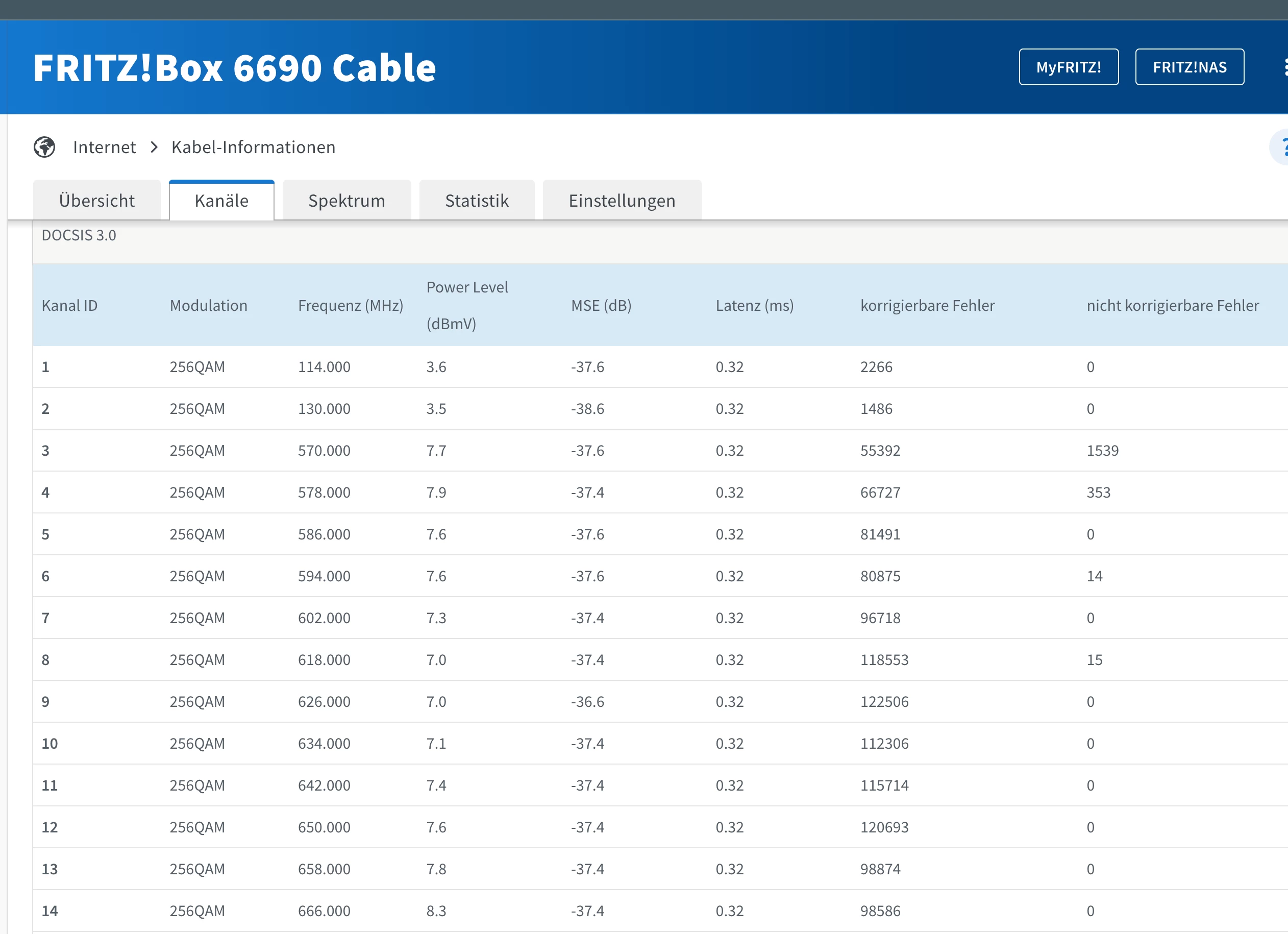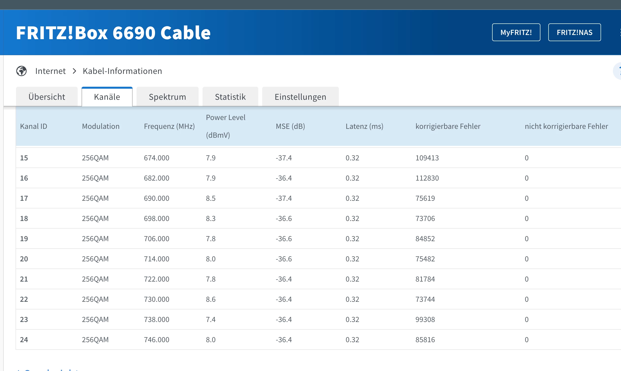 Modemwerte Fritzbox 6690 (unkorrigierbare Fehler)