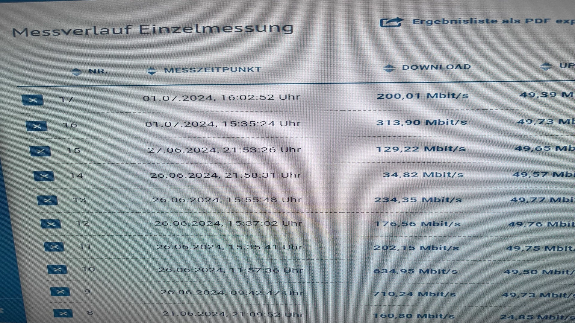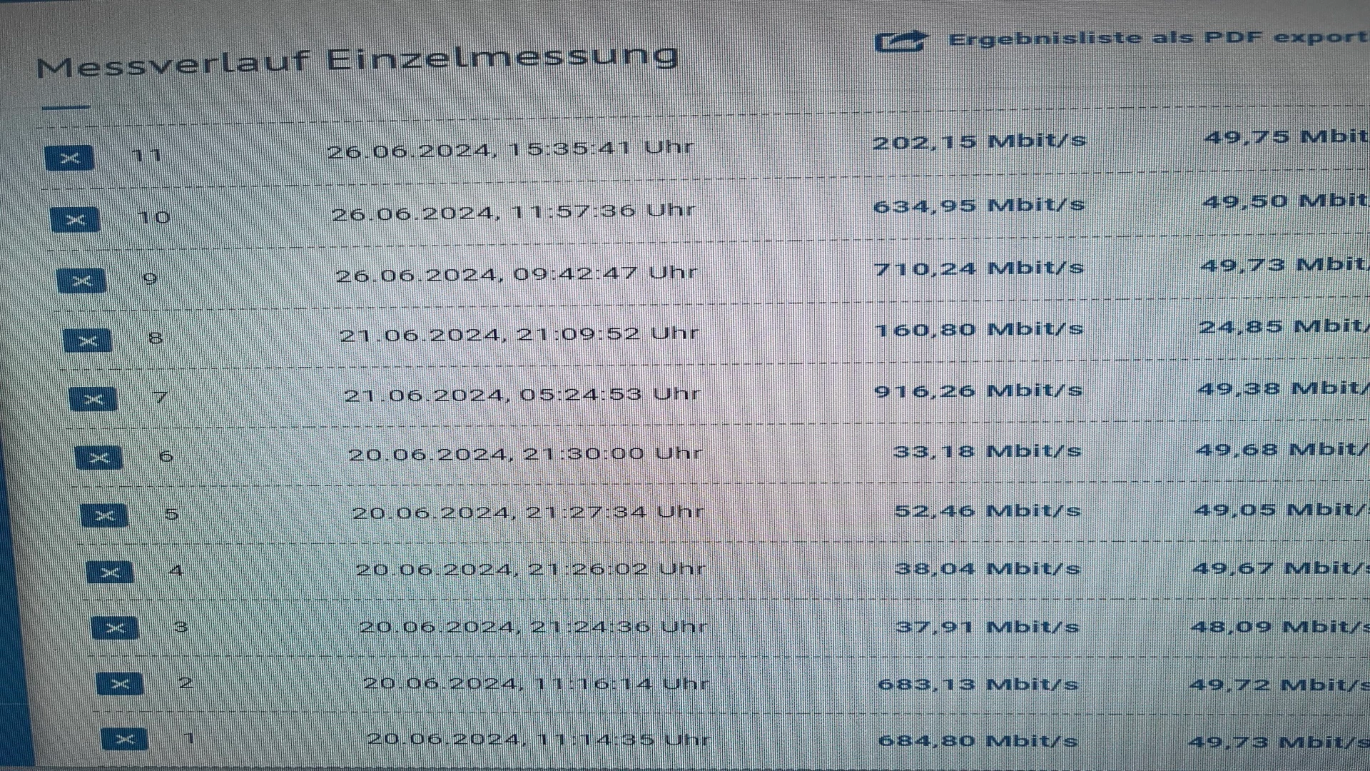 ich habe nun messung von der breitbadmessung gemacht von der netz agentur um zu schauen und was sind das für heftige schwankungen bei einer 1000mb leitung. hat einer idee?