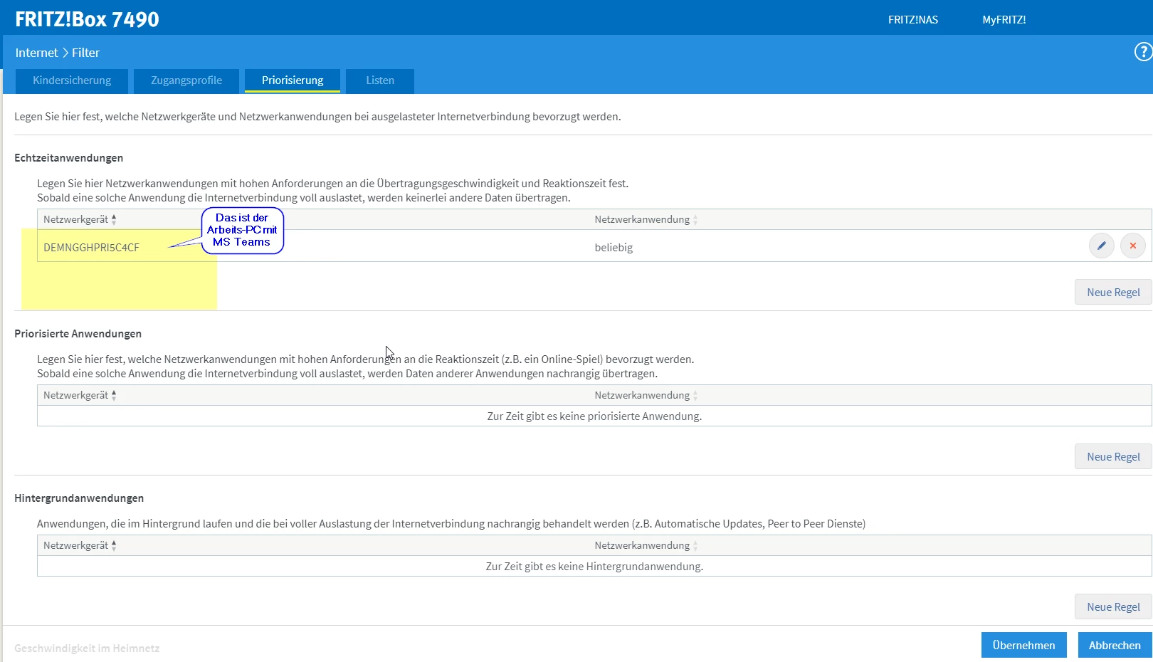Danke Dir. Habe die Priorisierung geändert. Eine Einstellung die “Homeoffice” heißt habe ich nicht gefunden.
