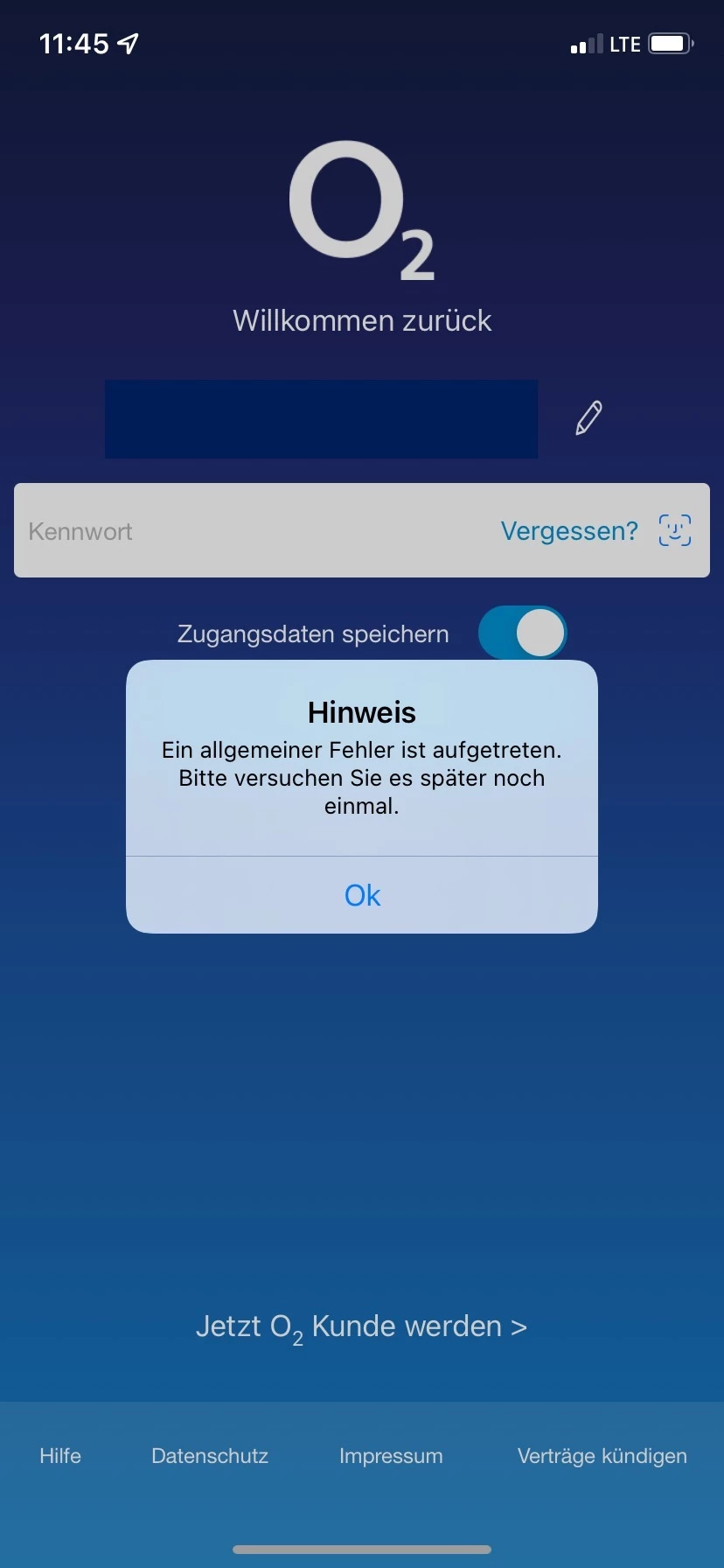 Über die App und über den Computer einloggen funktioniert beides dauerhaft nicht. Ich habe mich nach einem Tipp eines Hotline Mitarbeiters nochmal neu registriert. Derselbe Fehler wird dann ebenfalls angezeigt.